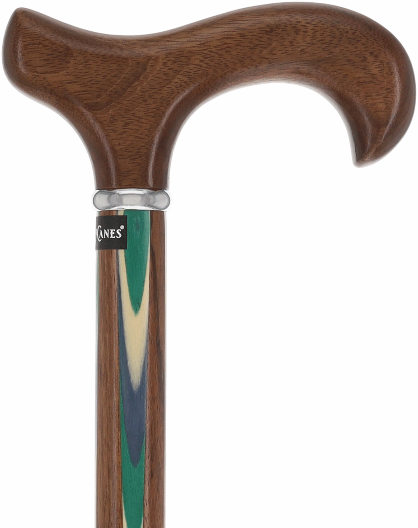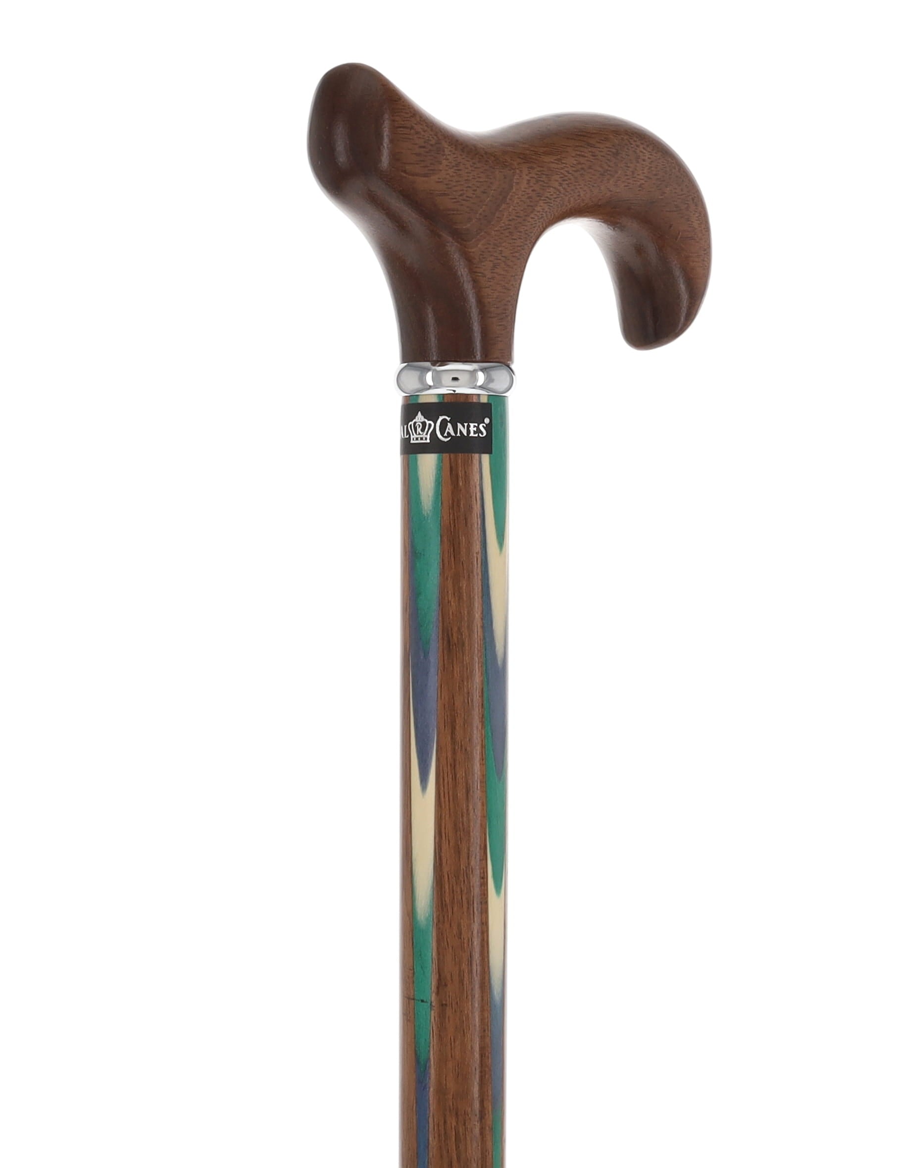 Green & Blue Inlaid Derby Walking Cane With Ovangkol Shaft and Silver Collar w/ SafeTbase