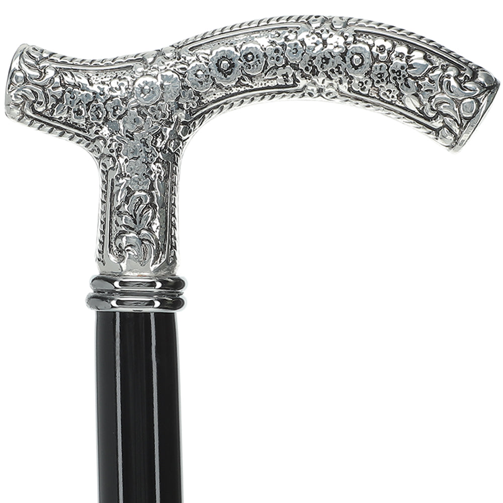 Scratch and Dent Downton Abbey Inspired - Silver 925r Petite Embossed Fritz Handle Walking Cane V2160