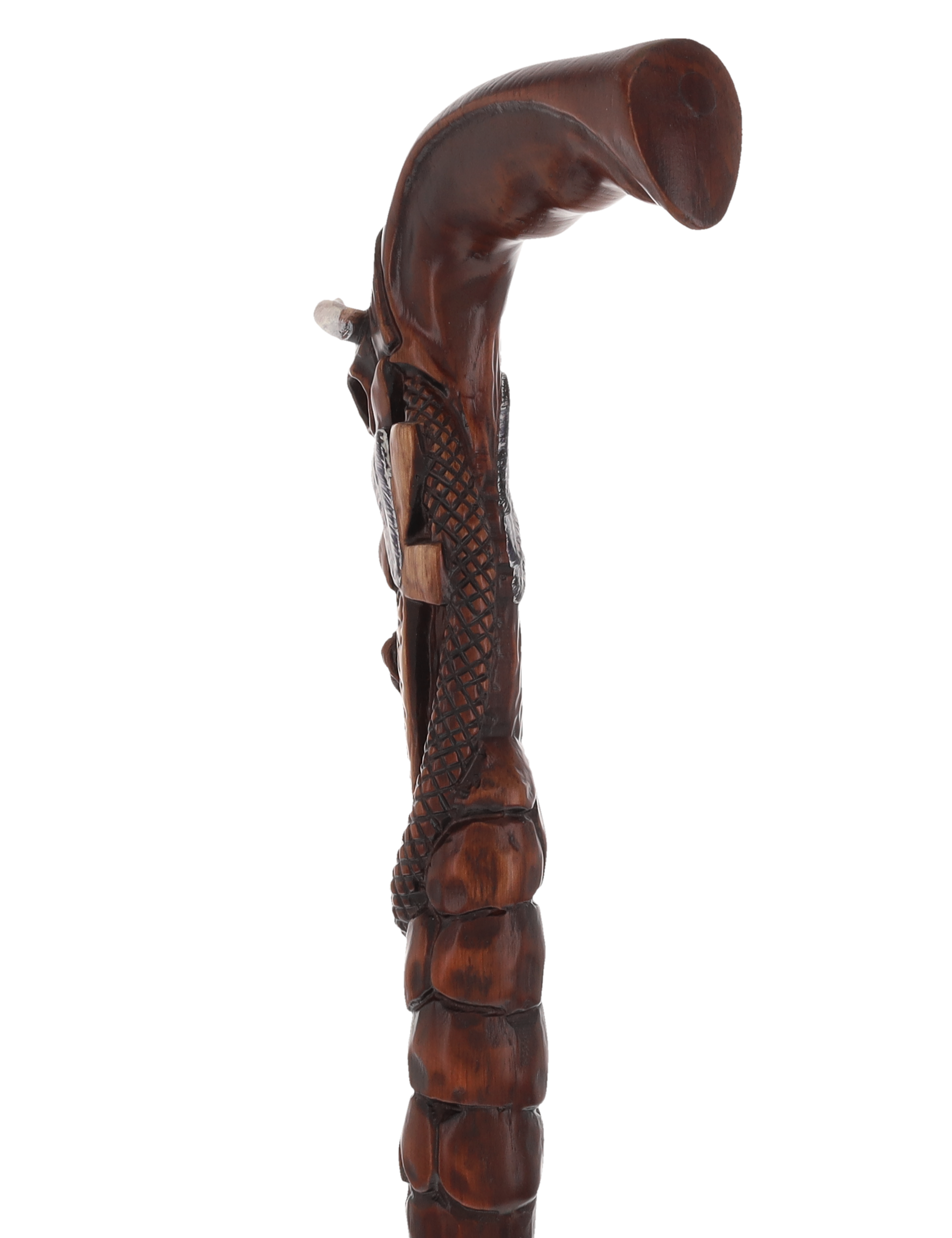 Buffalo Skull Snake: Artisan Intricate Handcarved Wood Cane