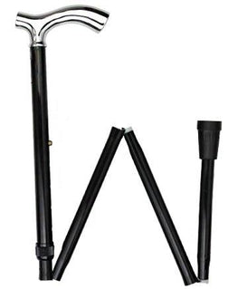 Scratch & Dent Chrome Plated Slim Line Fritz Walking Cane With Folding, Adjustable Black Aluminum Shaft V1806