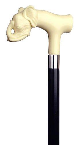 An elegant, faux ivory, elephant walking cane. The durable nylon elephant handle looks like it has been hand-carved out of ivory. You can see the great attention to detail on the elephants face that the craftsman in Italy have used. The shaft is made of a black maple wood to give you strength and durability. When using this magnificent and distinguished walking cane, you will find that you will have that extra touch at your next special event. Elephants have even been said to bring good luck. To see a closer look, just click-on the tab below the picture.