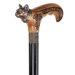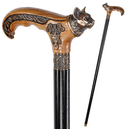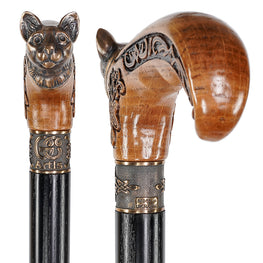 Kitty Head: Bronze & Wood Artisan Intricate Design Cane