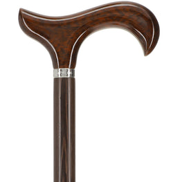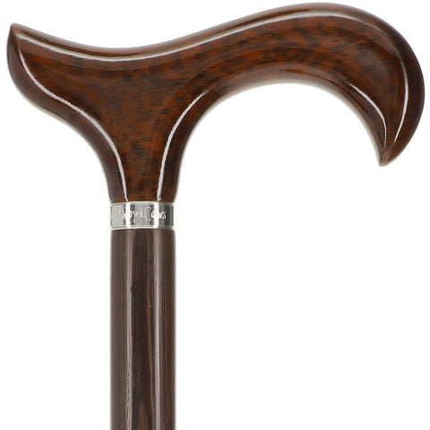 Scratch and Dent Derby Walking Cane w/ Genuine Snakewood Handle & Wenge Shaft w/ Silver Collar V1271