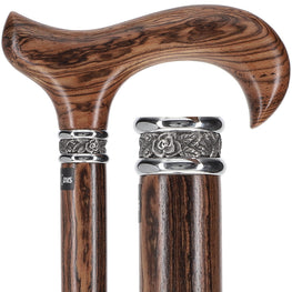 Scratch and Dent Derby Walking Cane With Genuine Bocote Wood Shaft and Pewter Rose Collar V1220
