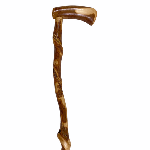 Our one of a kind spiral vine twisted wood walking canes are handcrafted, and no two are identical. The vine curls around the small tree, as the tree grows, the vine creates the unique curls in the stick. These sticks are very difficult to locate and require many hours of searching to find.