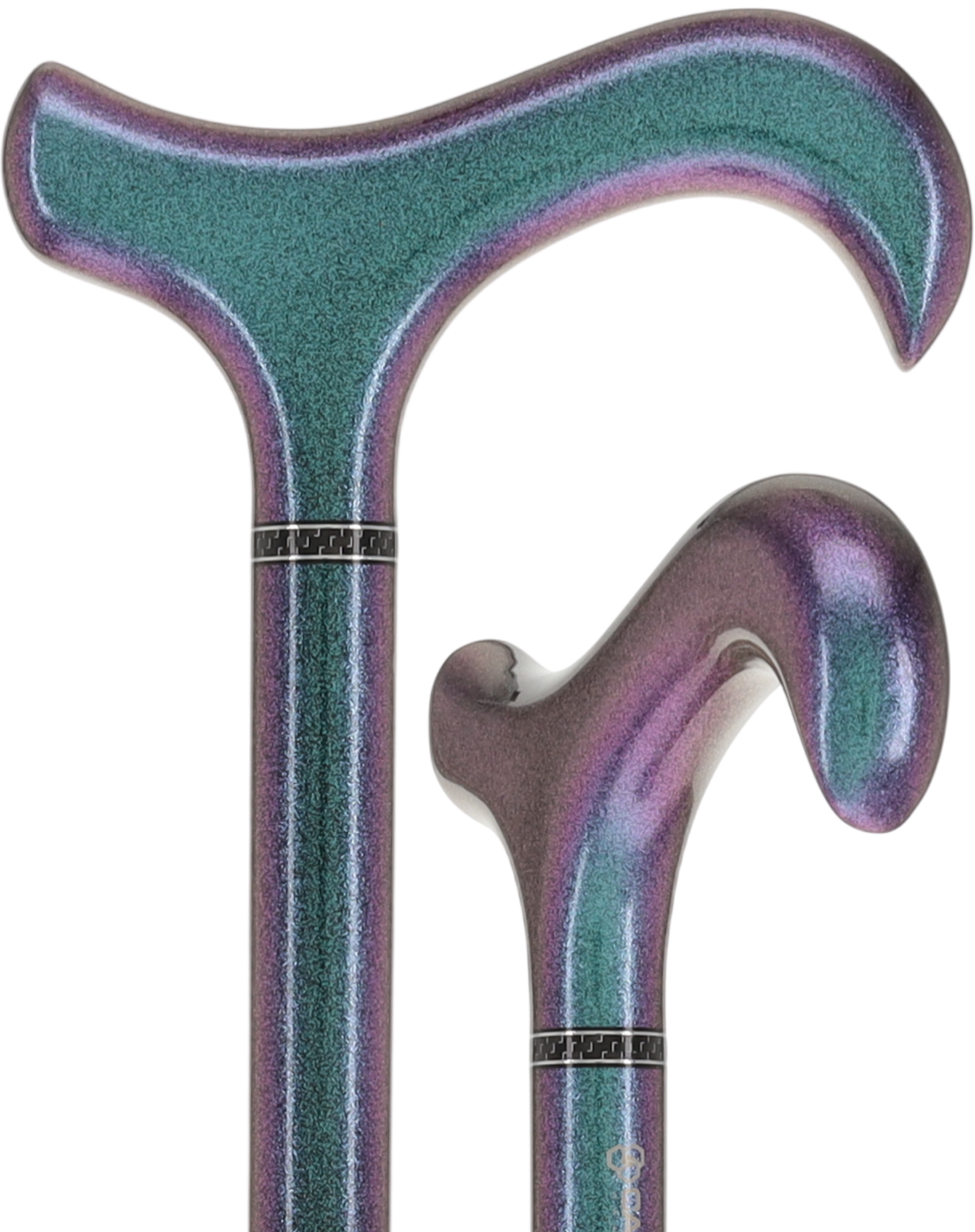 Experience the magic of color-shifting elegance with this lightweight carbon fiber walking cane. Watch as it transforms through mesmerizing purple, blue, and green hues depending on the angle and light—a stunning conversation starter that turns everyday mobility into a fashion statement. The timeless derby handle offers familiar comfort and classic style, while the featherlight construction ensures effortless daily use. Stand out with confidence and grace.