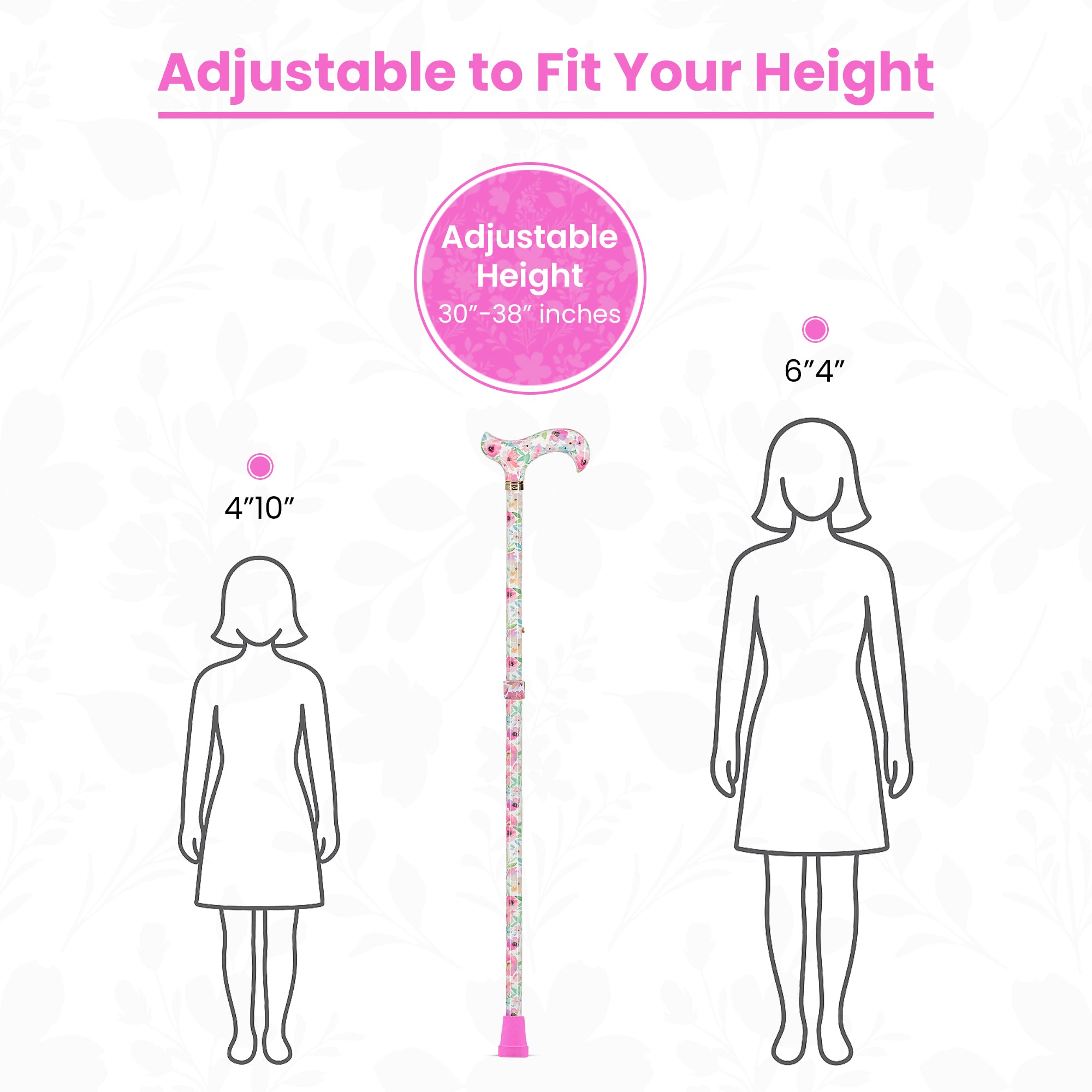 This cane is Adjustable and Fits 4' 10" to 6' 4" tall