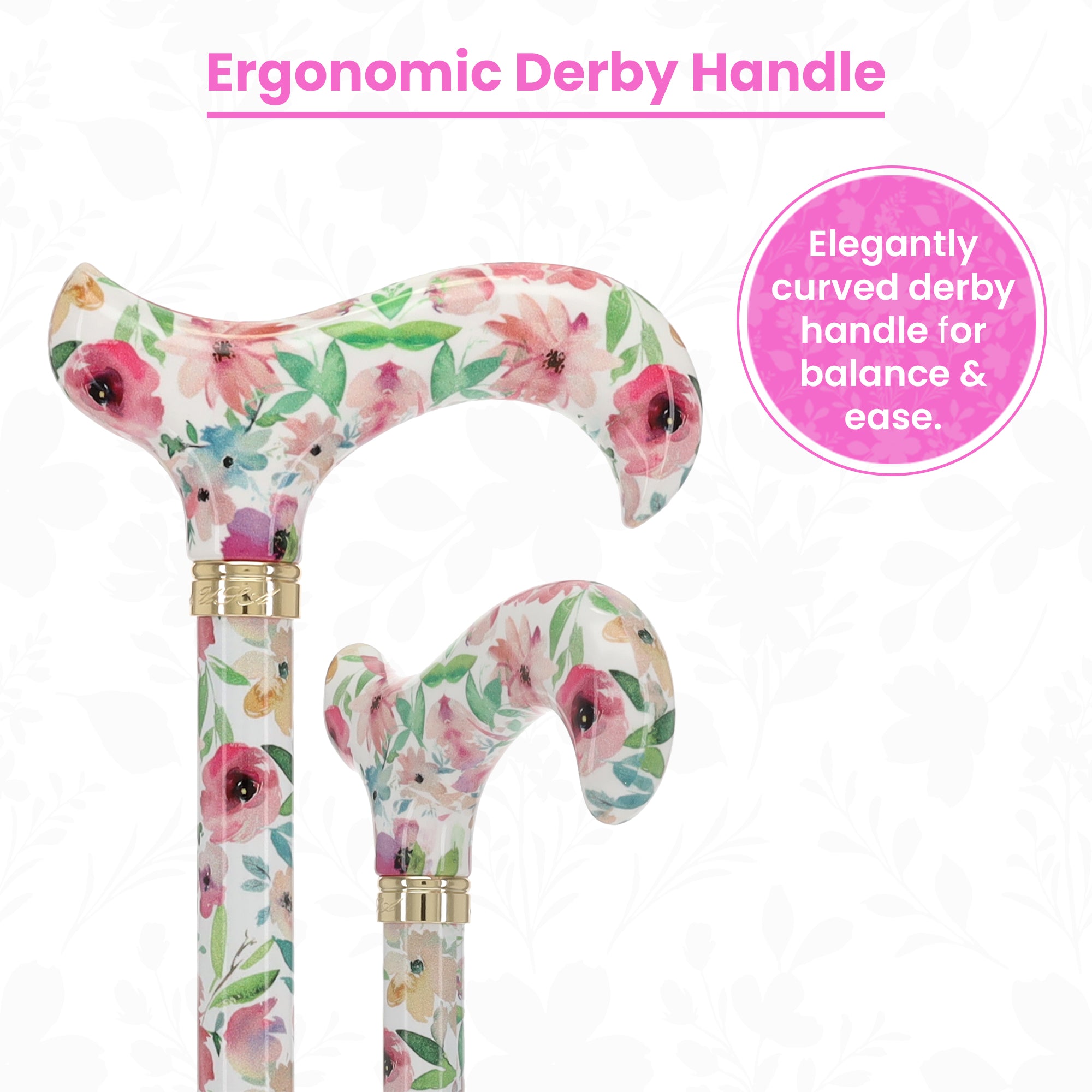 This item was manufactured by Royal Canes with fashion and functionality in mind. The derby-style handle is consistently rated as being one of the most comfortable handle styles available due to its unique curvature. Dress it down with a pair of jeans or a simple frock for an effortlessly fashionable ensemble. No matter the season, this whimsical walking cane will keep the gentle breezes and aromatic flowers of spring fresh in your mind.