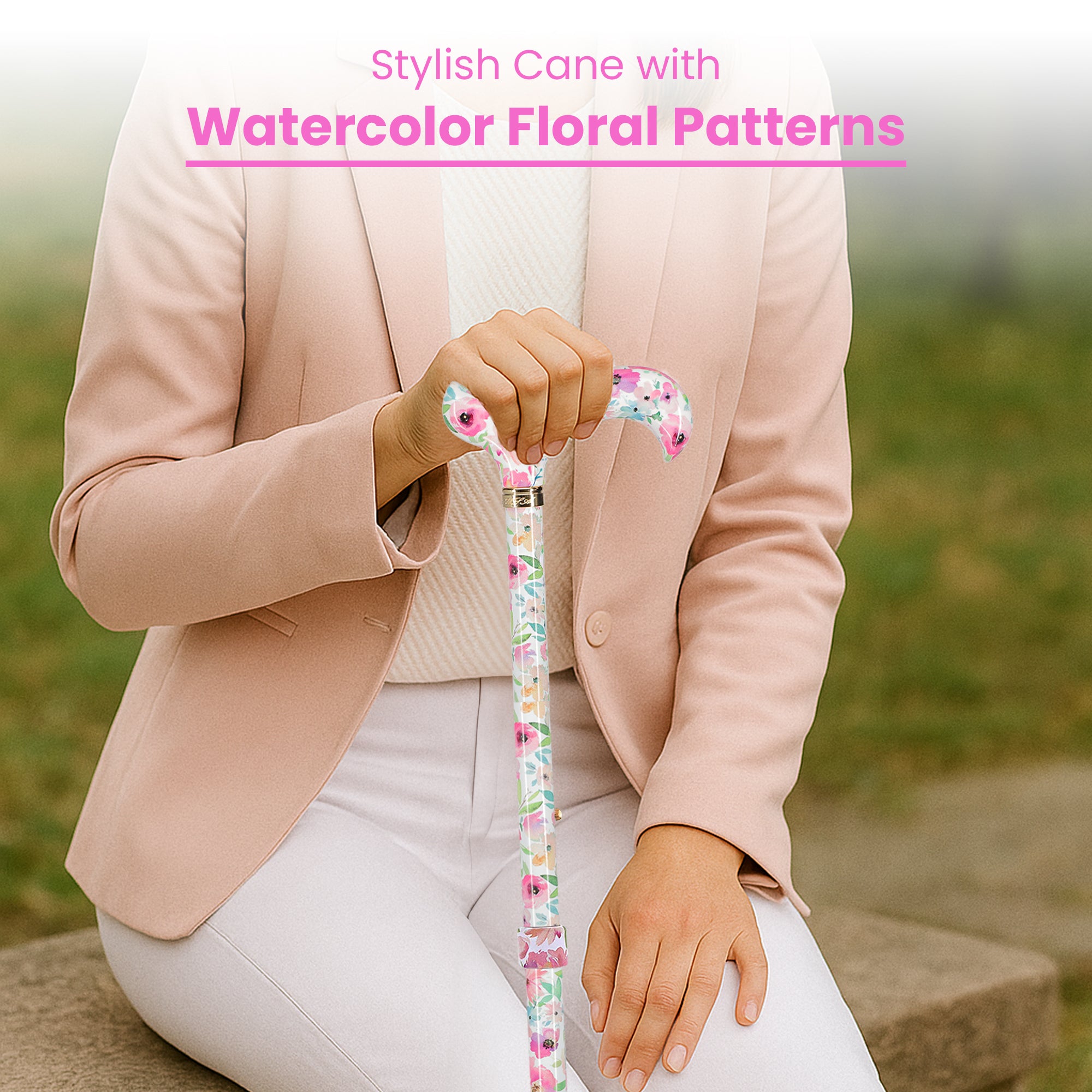Watercolor Flowers: Designer Adjustable Cane w/ Patterned Handle