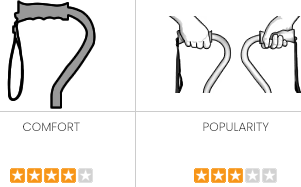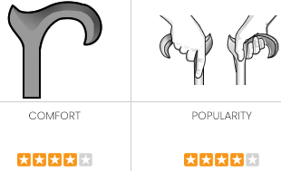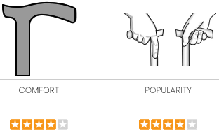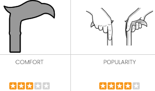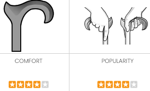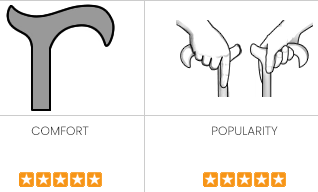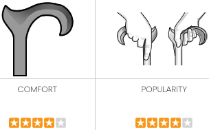 Use the following cane handle chart to help you make your selection. The guide features 9 types of cane handles with ratings for both comfort and style (or popularity). It will help you find the right balance between fashion and function when buying your next cane.