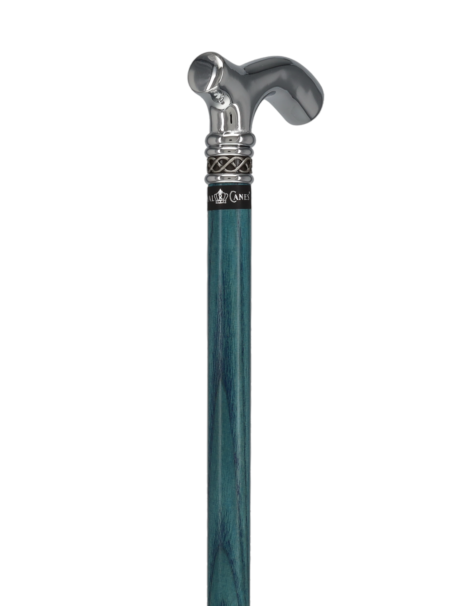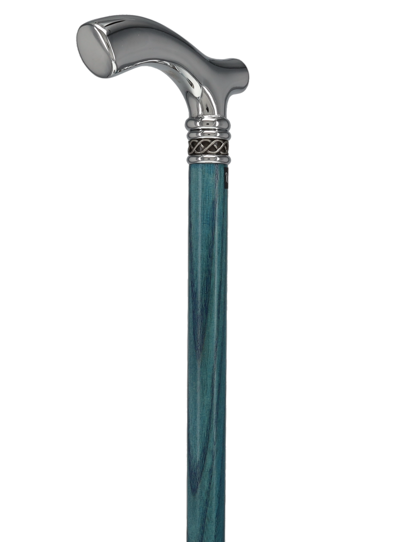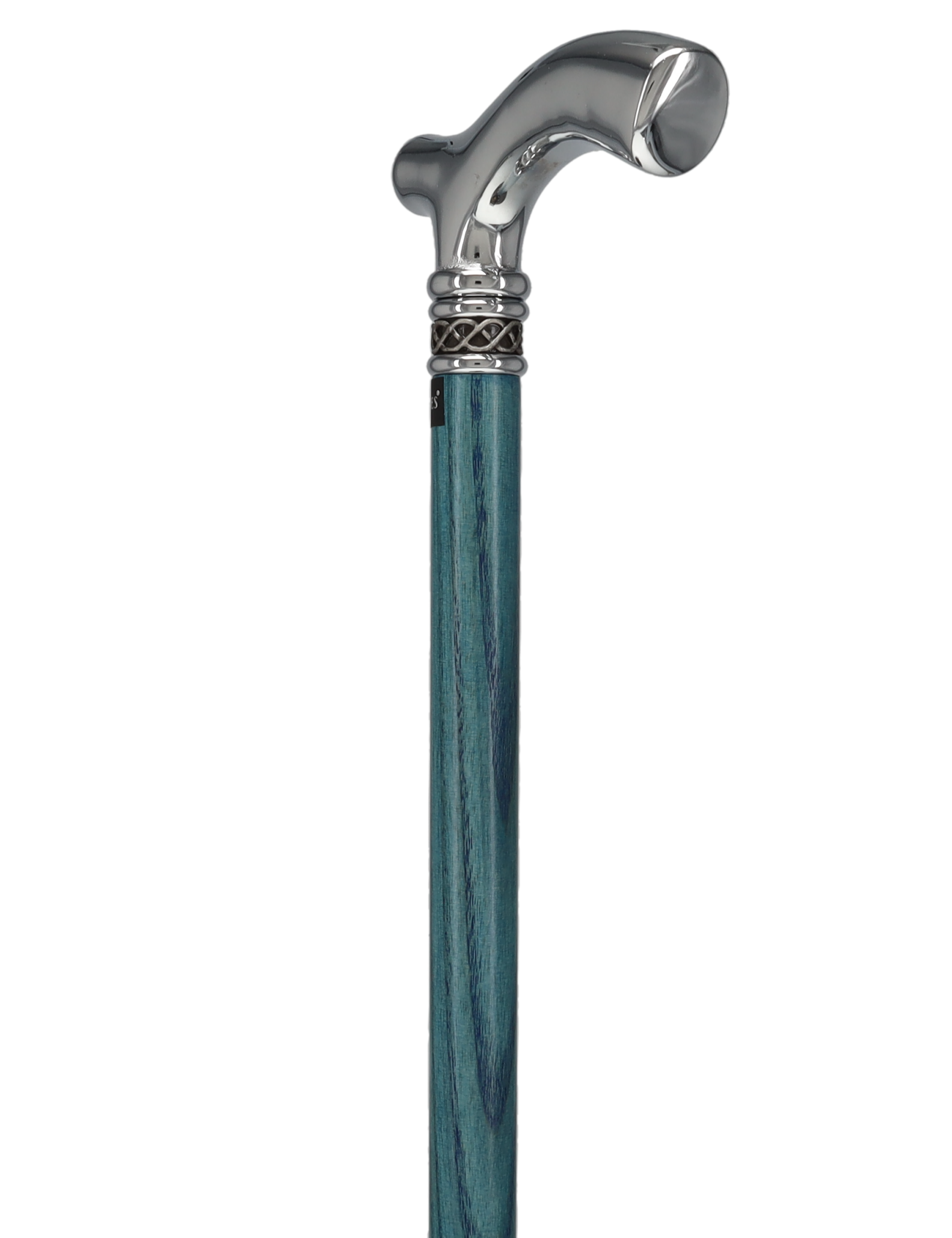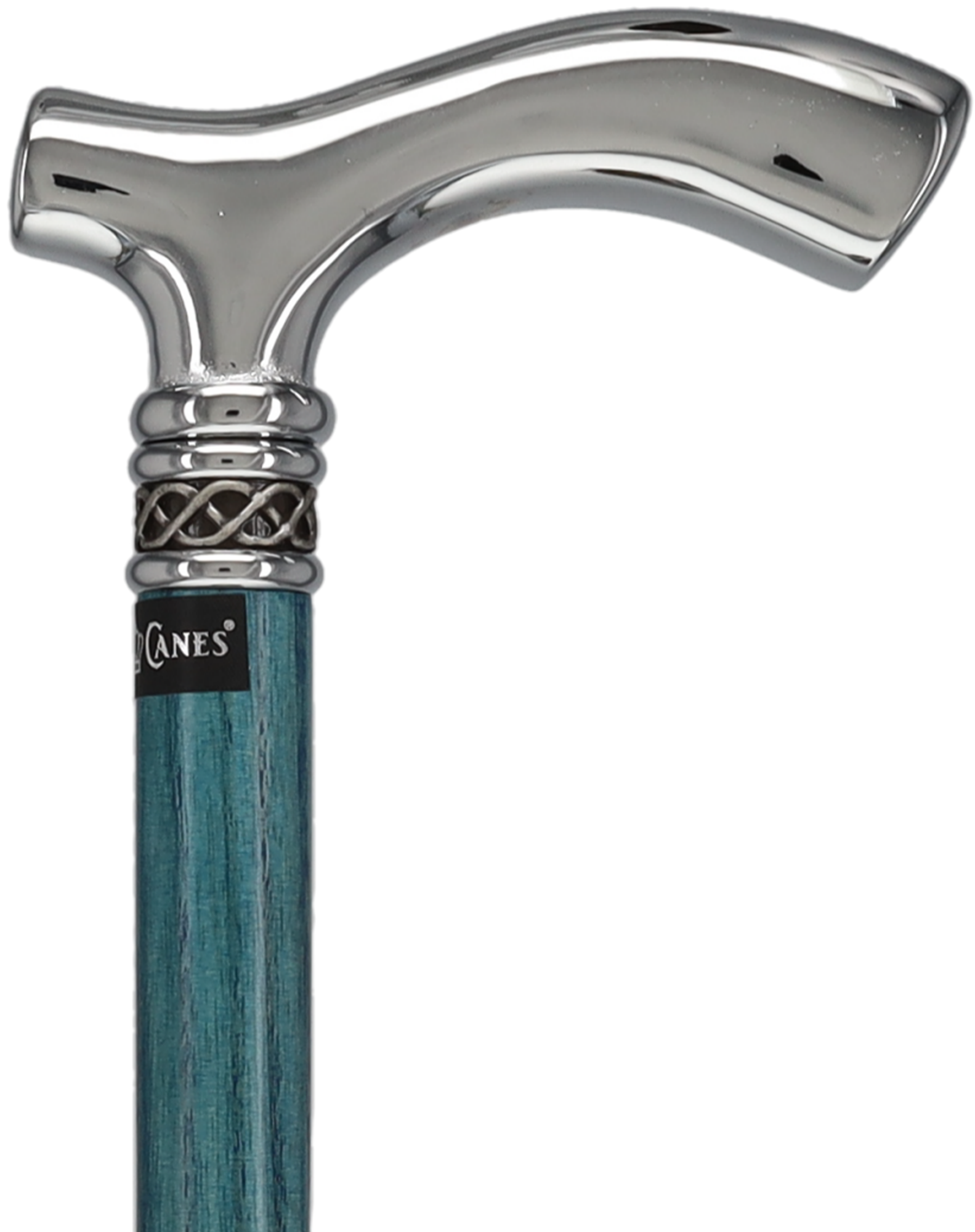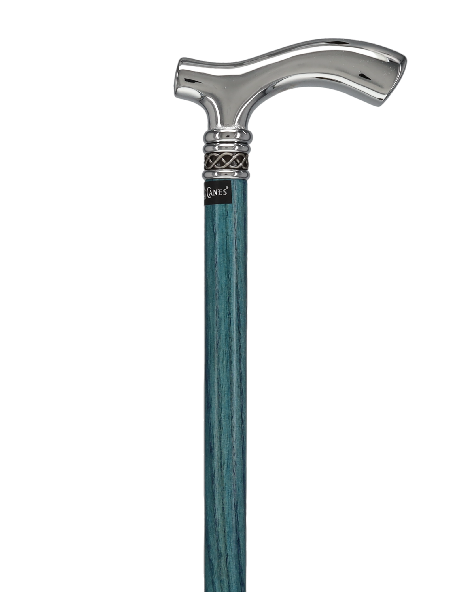 This new slim line walking cane shaft is made of high quality Blue stained ash wood. The shiny Chrome handle is sleek and smooth giving this cane a very rich feeling. The slim line blue ash cane comes adorned with a very attractive and sophisticated braided designer pewter collar. The comfortable fritz handle is a great handle for Arthritis suffers and individuals ailing from Carpal Tunnel syndrome alike. This walking cane will be a gorgeous accessory no matter if you are dressing up or dressing down.