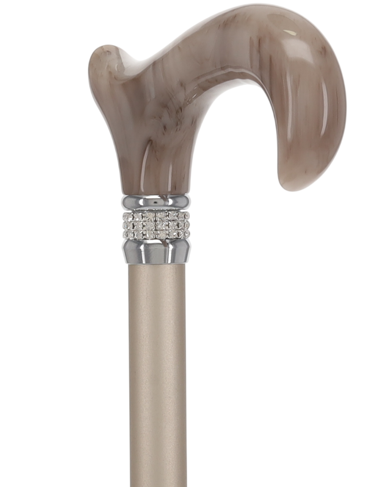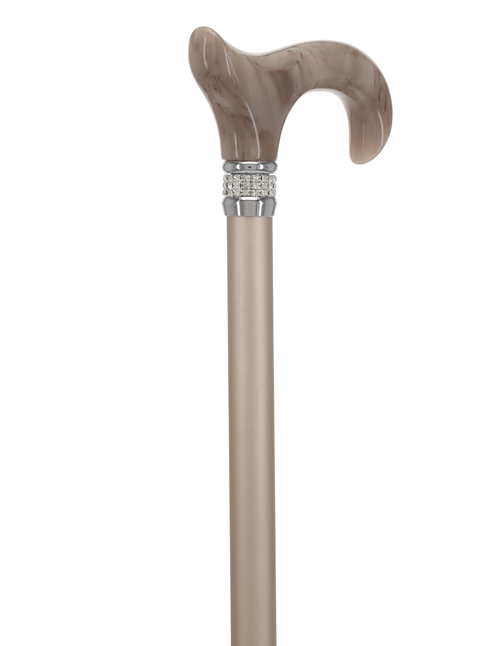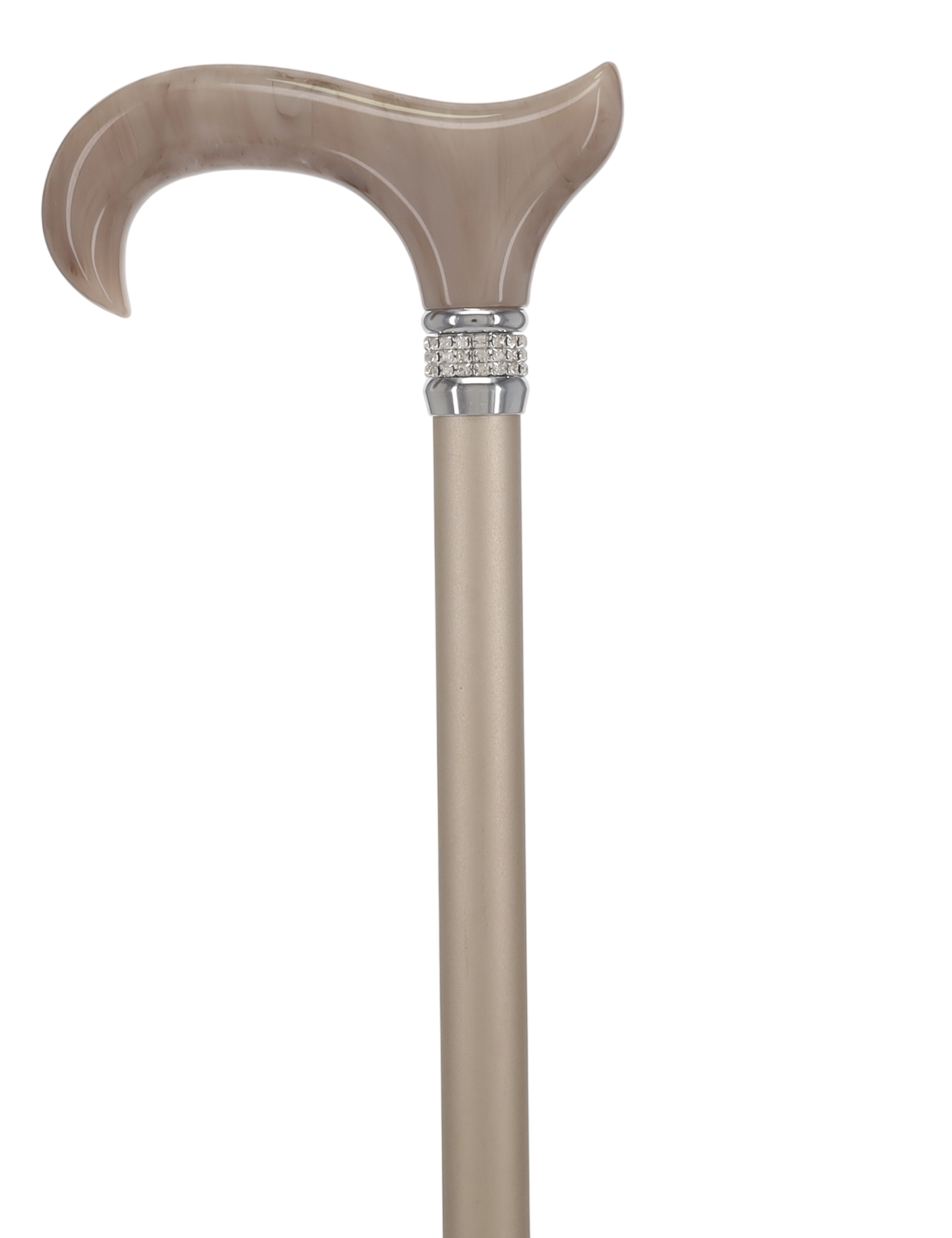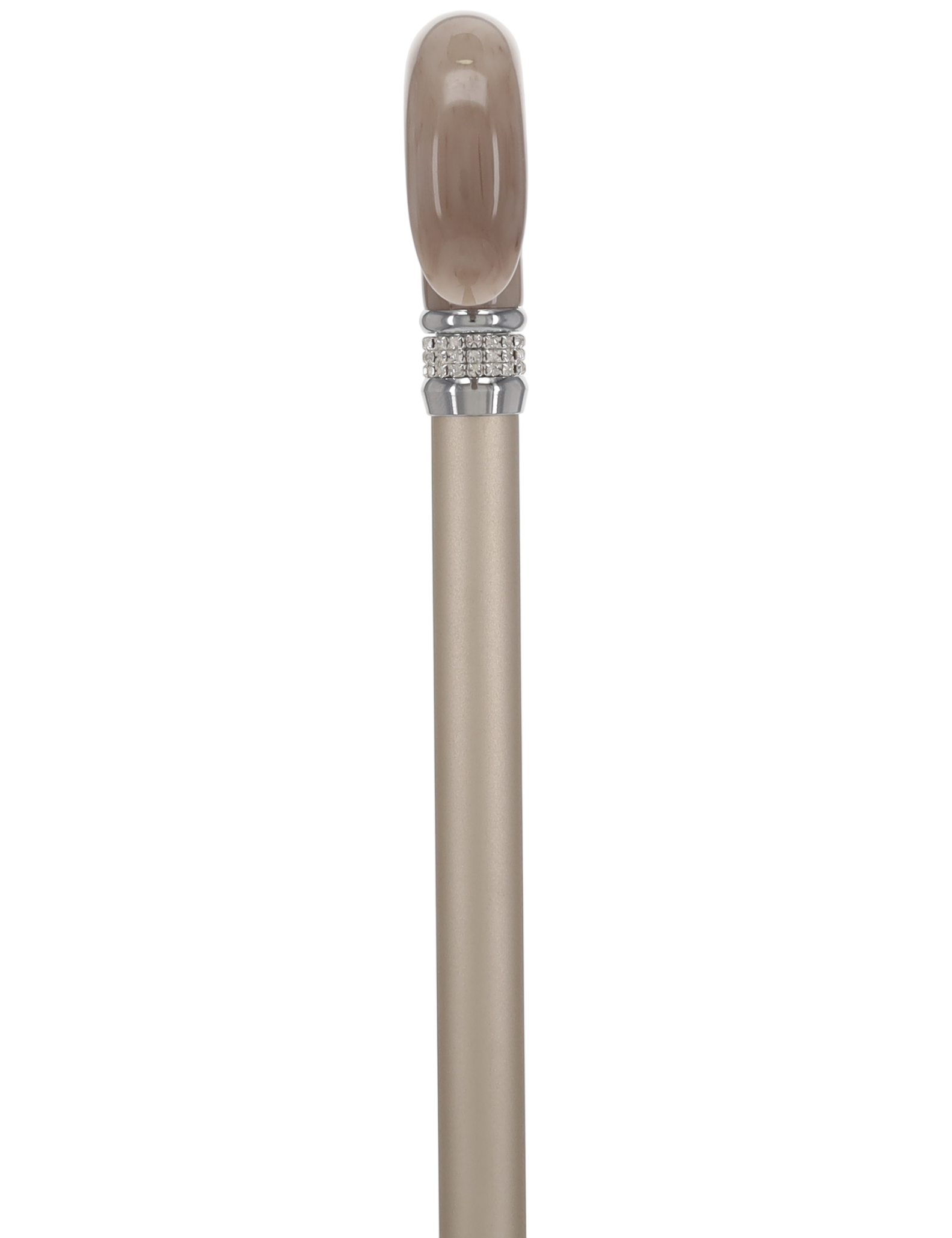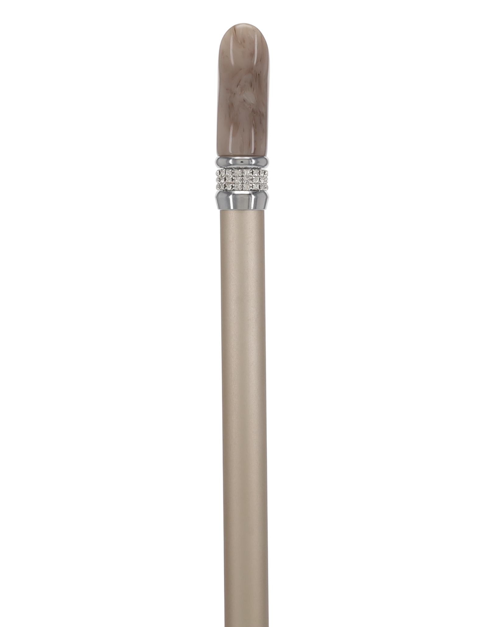 If you have a love for all things champagne colored, then this cane will be a perfect addition to your collection. With a stunning rhinestone-encrusted collar connecting the beautiful handle to the lightweight, sturdy shaft, this piece is one that is sure to draw eyes. Constructed of lightweight durable materials, this cane will enhance any outfit. This cane will be a hit at any event!