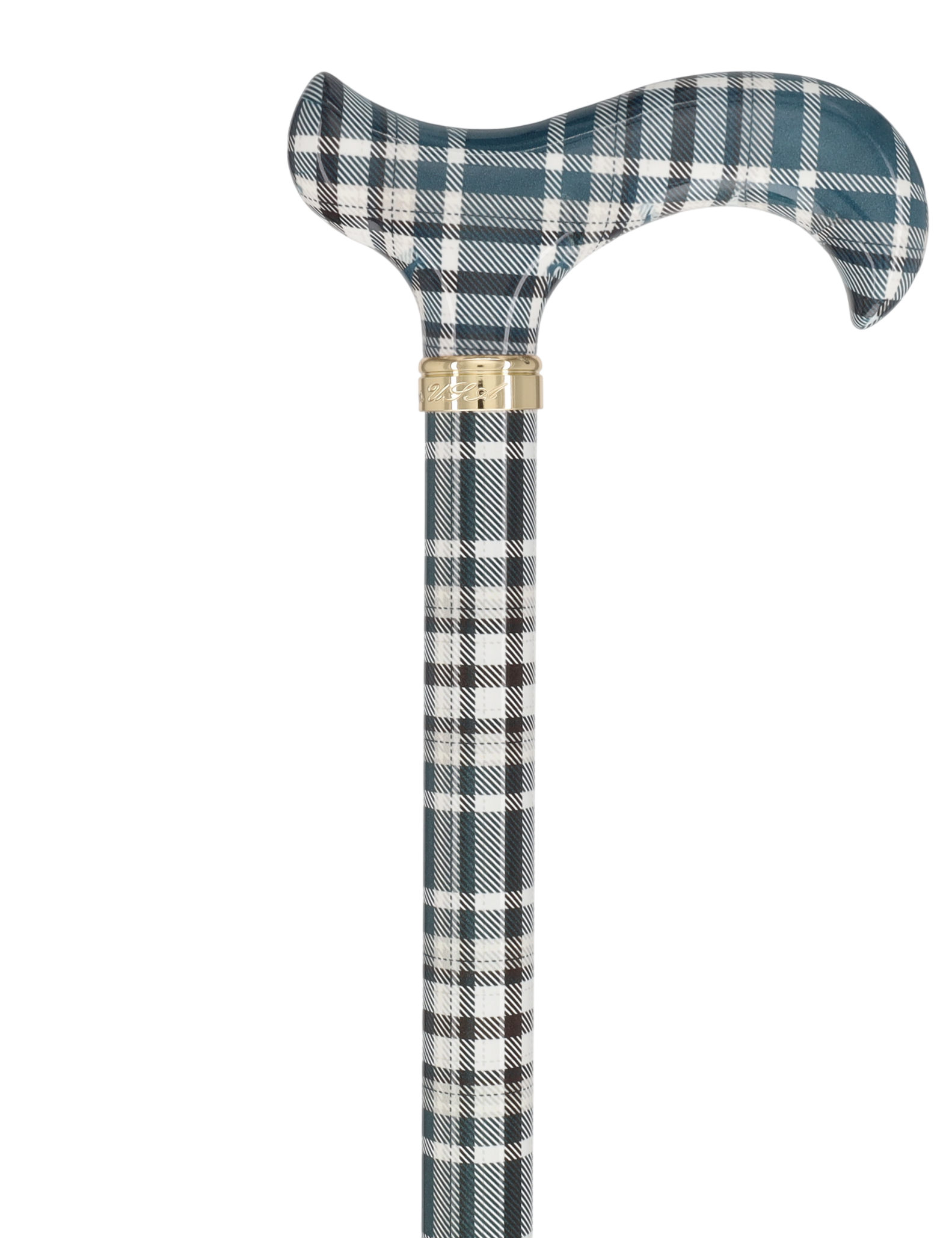 Embrace timeless elegance with this classic plaid adjustable walking cane in navy and brown. The traditional derby handle paired with premium construction provides steadfast support and comfort for daily use. Customize the height to suit your unique frame to keep you assured with every step. More than a practical mobility solution, this cane is a sophisticated accessory that reflects your appreciation for enduring style and quality craftsmanship. Move through life with grace and confidence, knowing you've chosen a walking companion that honors both your comfort and your refined aesthetic.