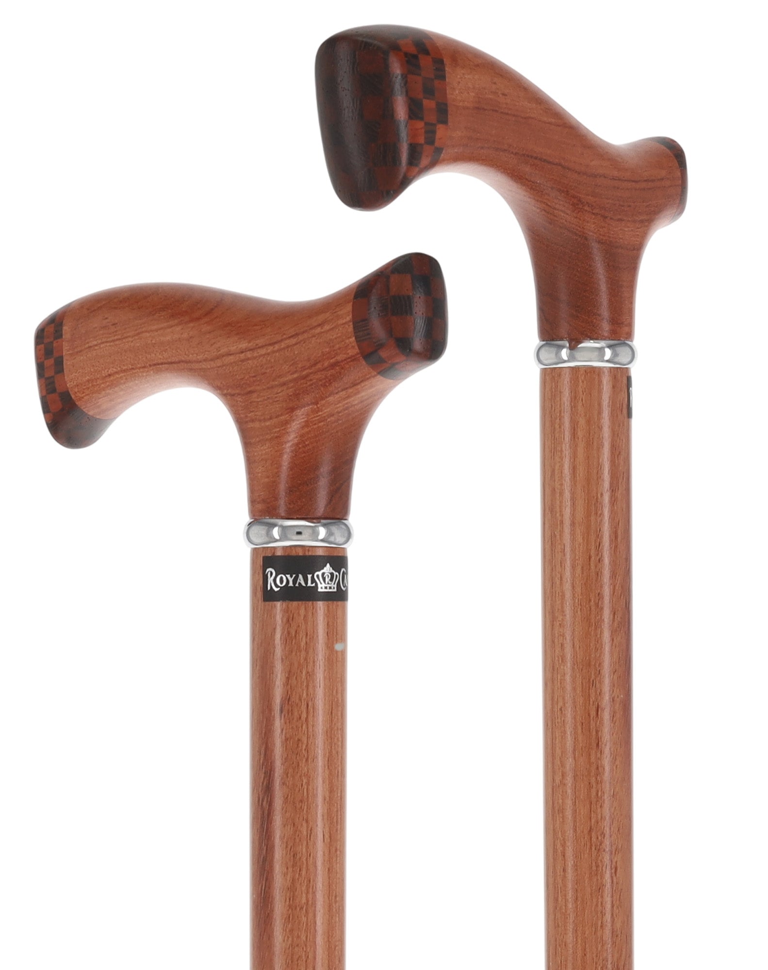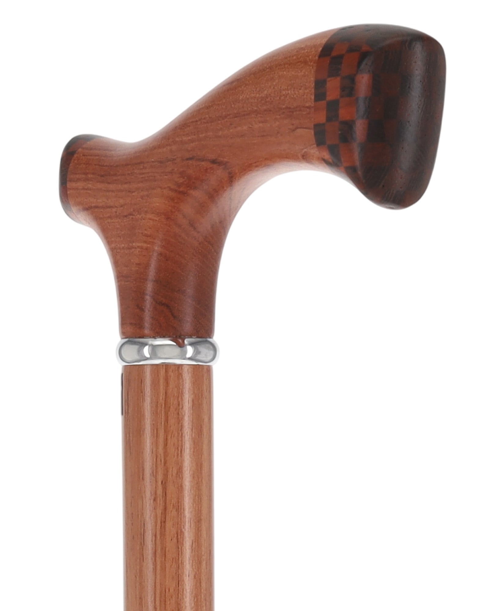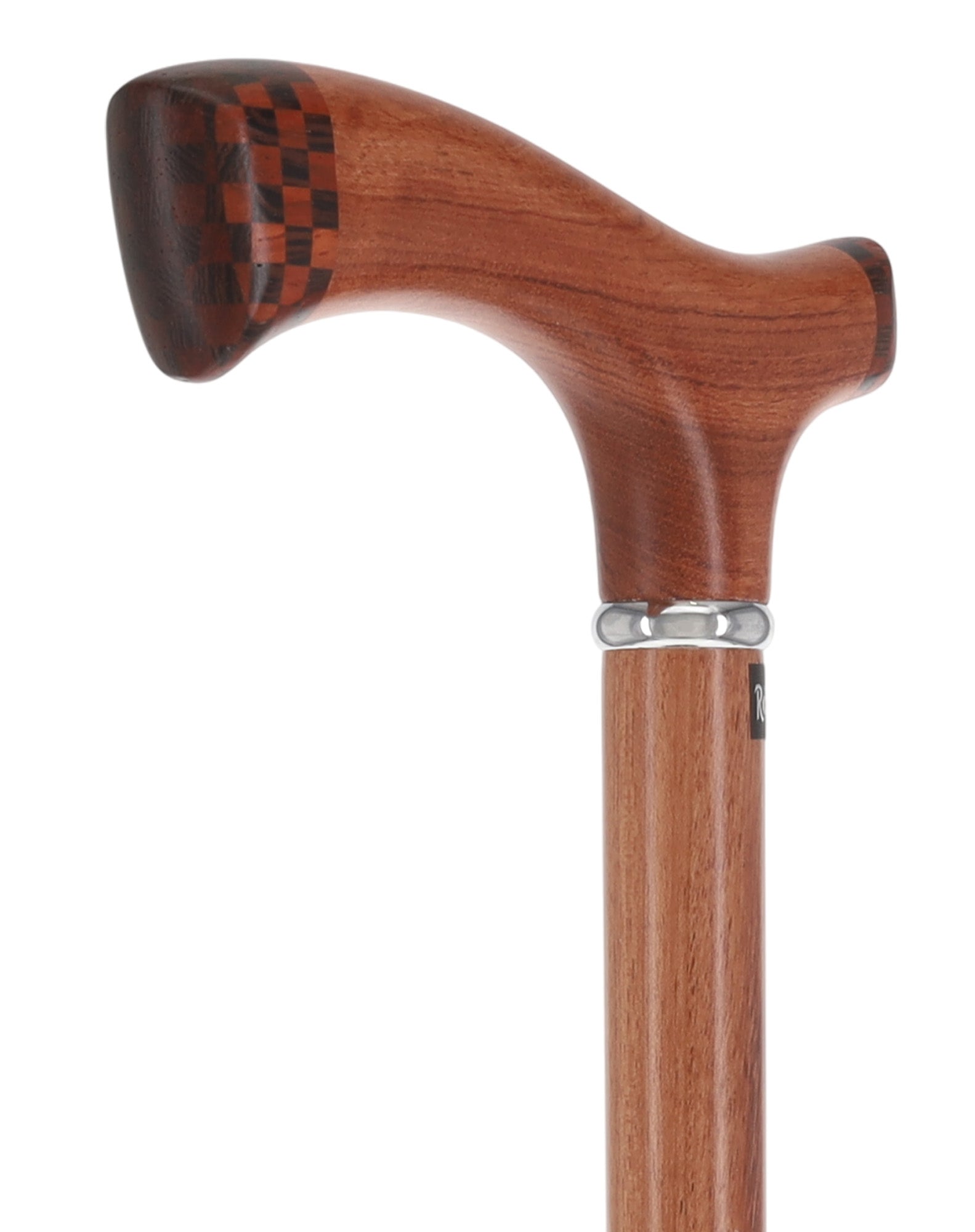 Genuine Rosewood shaft and handle with checkered wood Wenge and Rosewood inlay on the ends of the cane handle. Just like the derby version, this whimsical, but classic looking cane is strong, resilient and comes with the popular fritz handle. The fritz handle has been designed to be more comfortable to hold than other handles. This type of handle is especially helpful for people who have arthritis or carpal tunnel. Beauty, strength and comfort…this cane has it all!