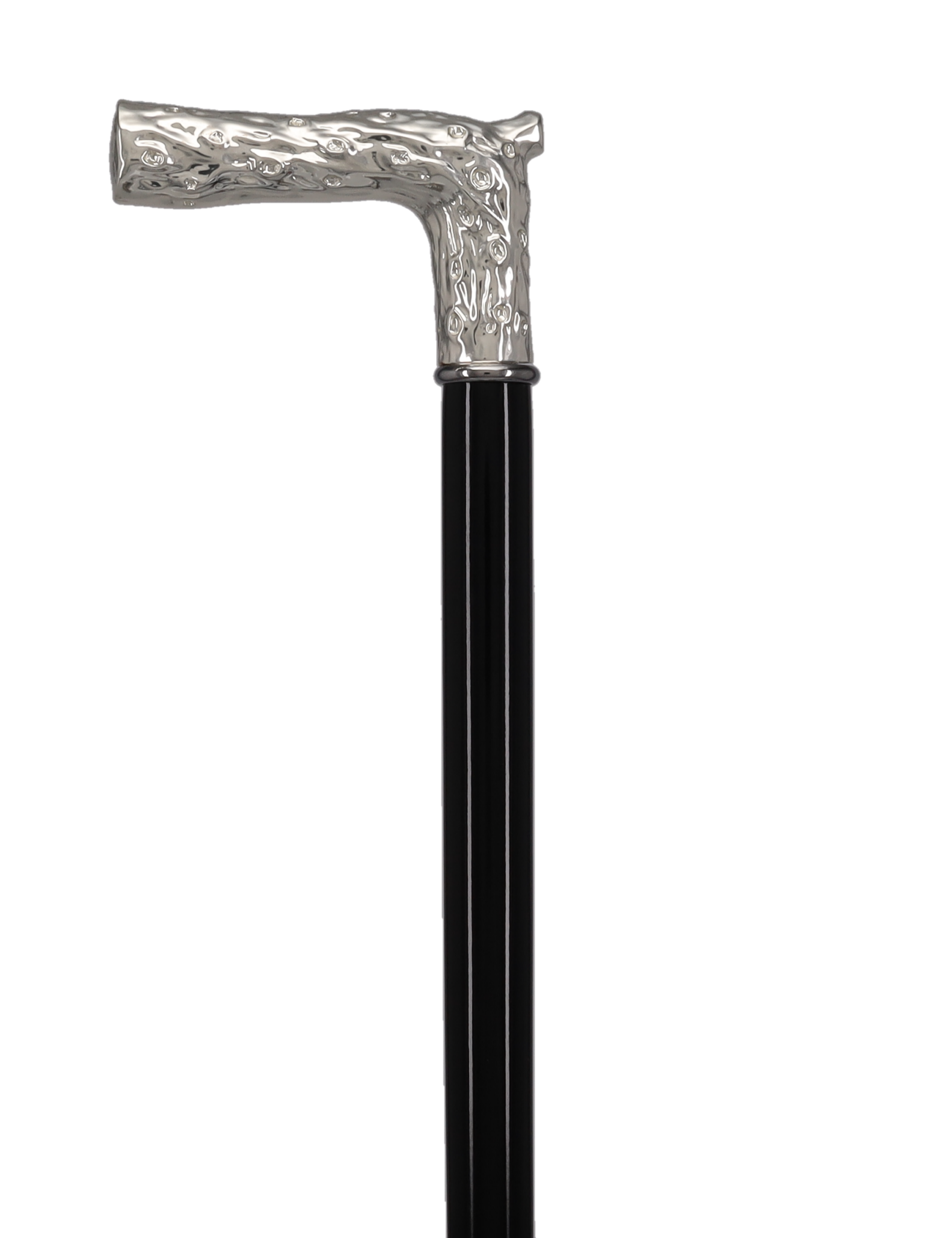 Inspired by the rugged beauty of a frozen forest, The Silver Birch features a uniquely textured handle plated in genuine Silver 925r. Specifically designed for petite hands, the handle mimics the intricate bark of a birch tree, providing a secure, tactile grip that catches the light with shimmering brilliance. Mounted on a high-gloss black beechwood shaft, it is the perfect companion for the woman who appreciates organic elegance.