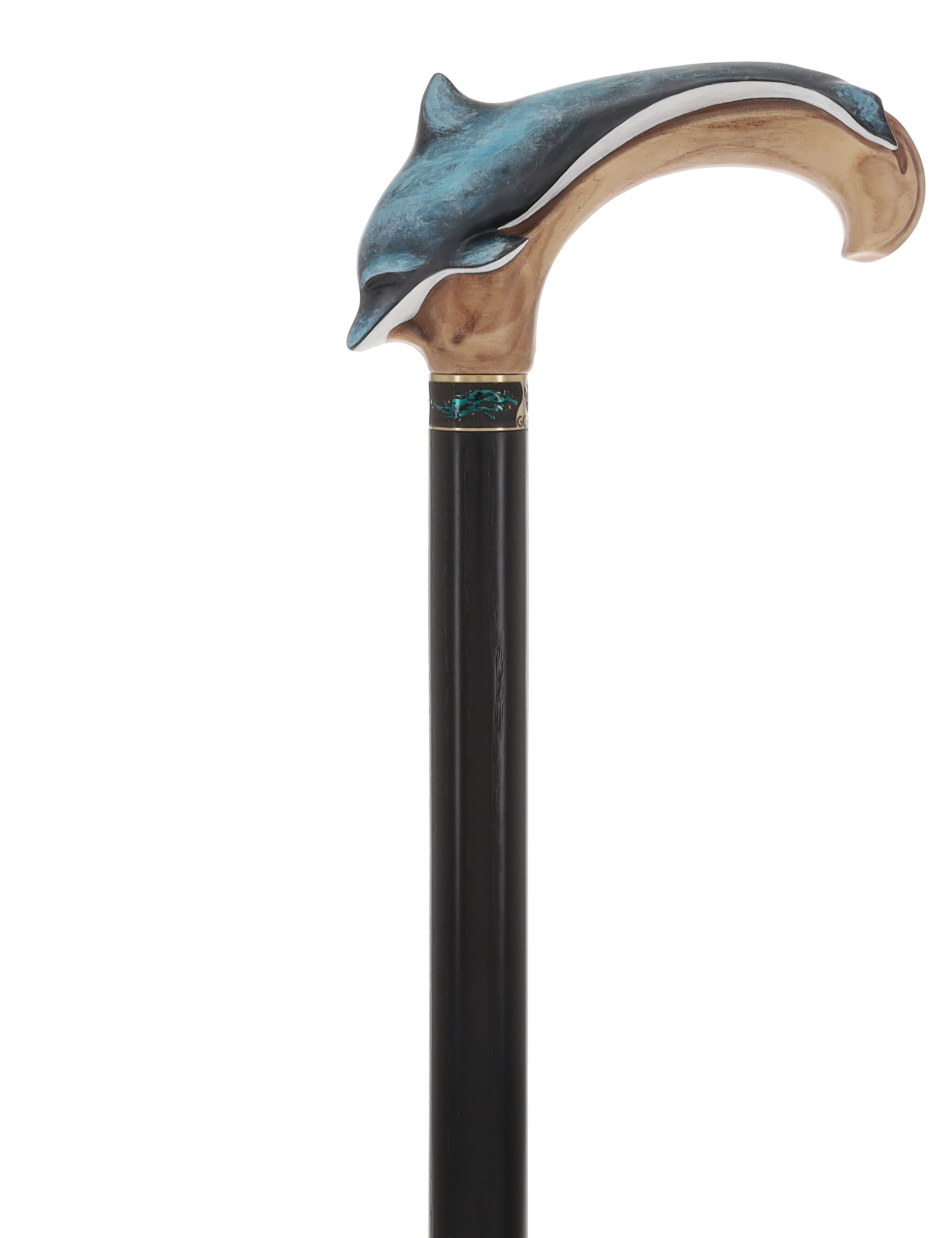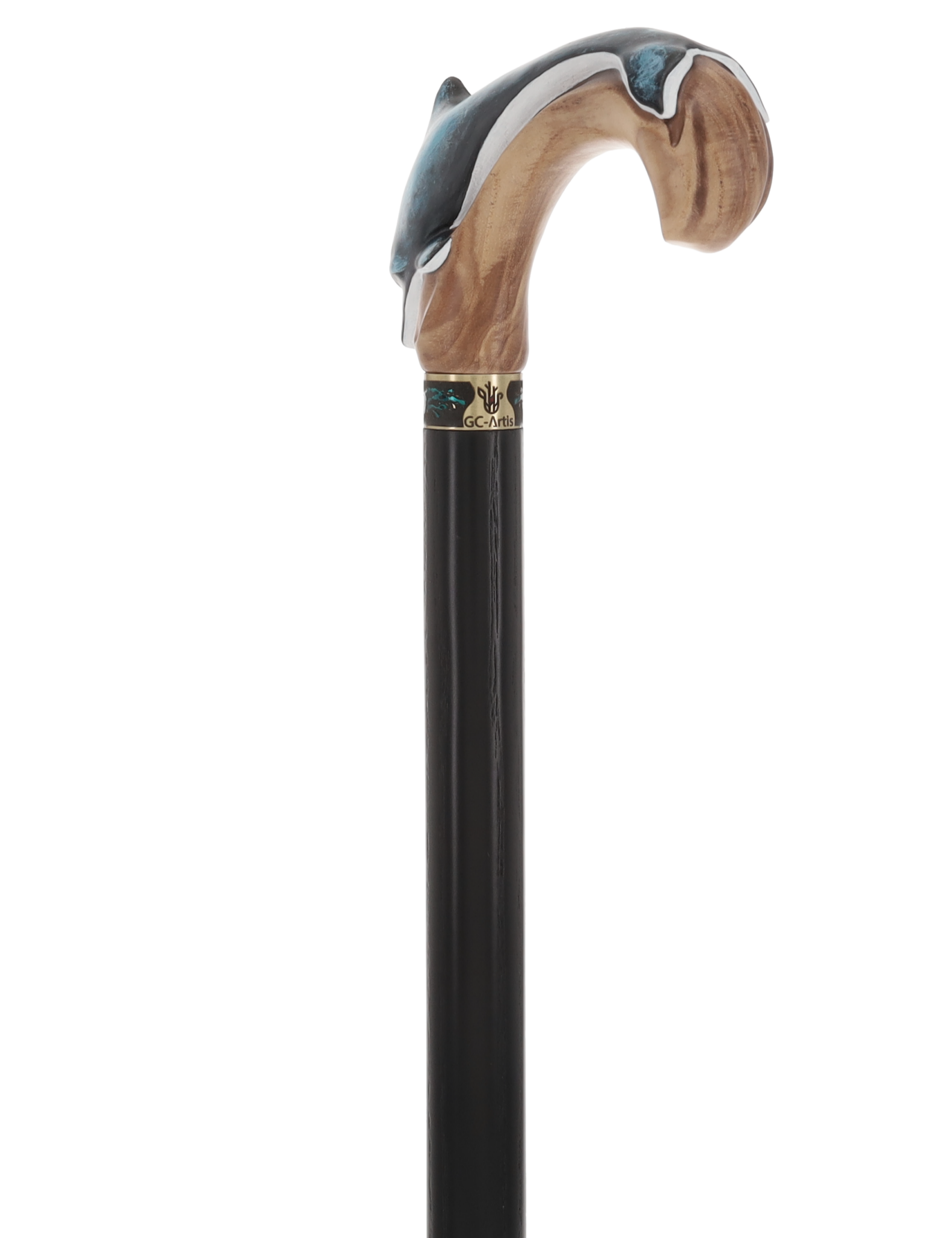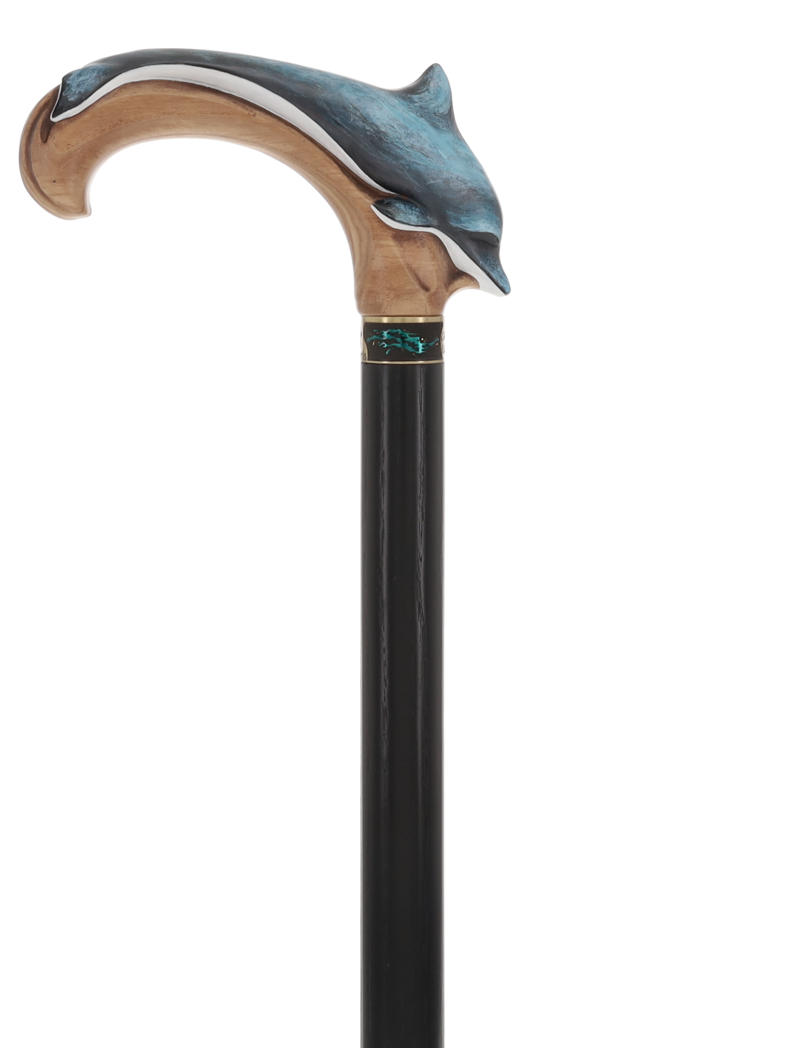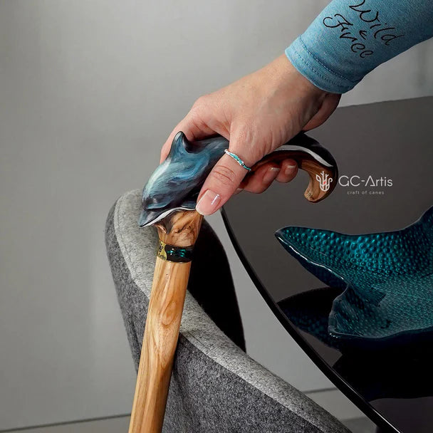 Masterpiece Hand-Carved Dolphin Painted Walking Cane