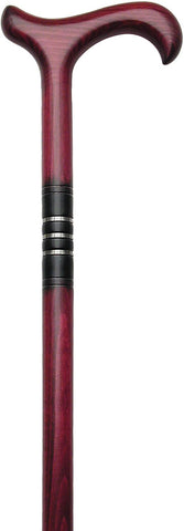 Scratch & Dent Rose Red Triple Ring Derby walking Cane With Burgundy and Ebony Stained Beechwood Shaft With Triple V1397