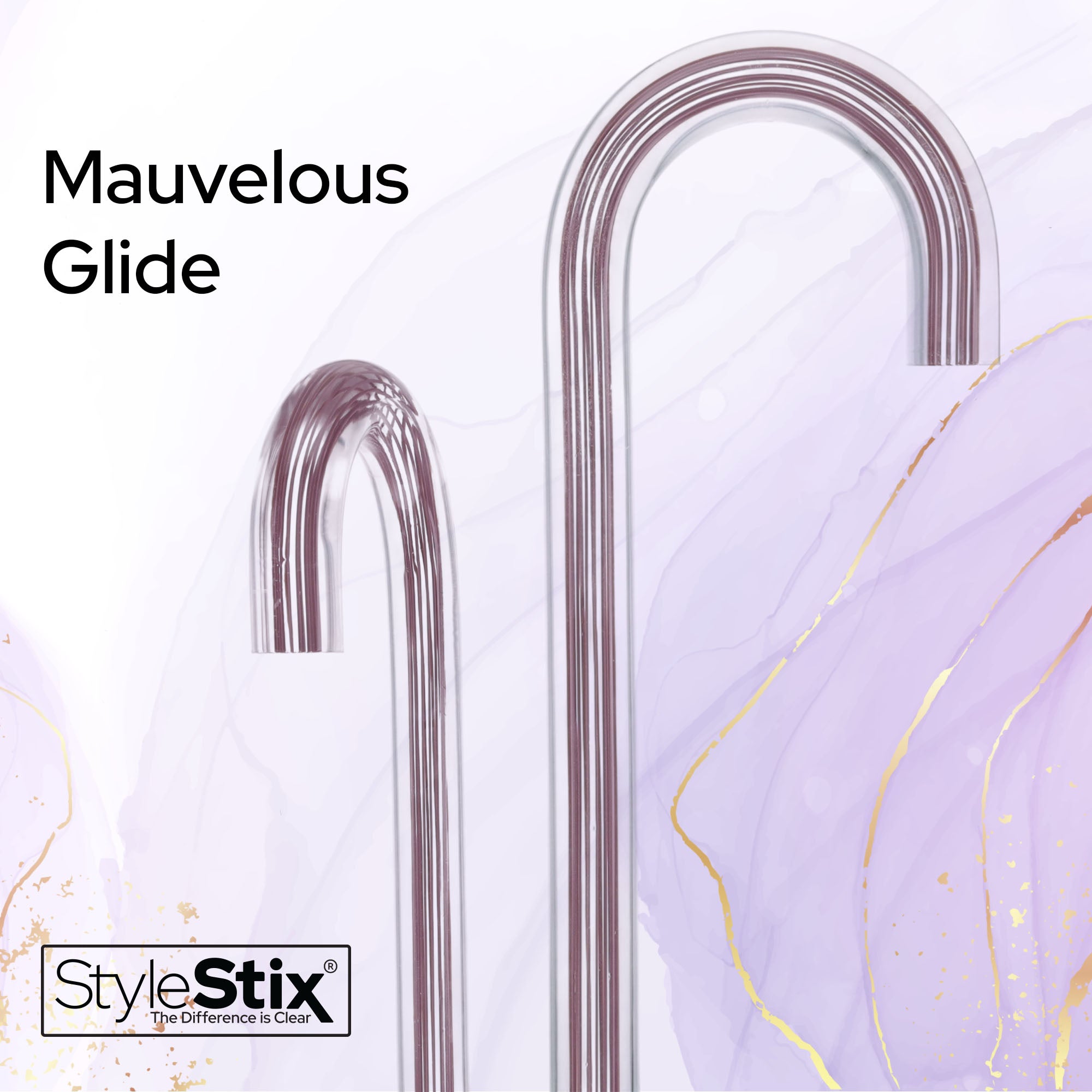 Introducing the Mauvelous Glide from the Style Stix Collection—the epitome of stylish canes! This sleek companion features rich mauve lines suspended within a crystal-clear shaft, designed to blend seamlessly with your wardrobe while silently stealing the spotlight. Once noticed, the elegant pinstripe design sparks conversations, turning heads with its sophisticated and modern charm. Step out confidently, and let your Mauvelous Glide be the talk of the town, sparking curiosity and admiration wherever you go!