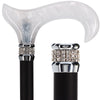 Whether you are going for fierce or fancy this cane is sure to fit the bill. The derby style handle features a beautiful white acrylic swirl pattern and smooth, sleek texture. This adjustable Black and White walking cane is made from lightweight, durable materials that will stand the test of time. This simple yet elegant walking cane features three rows of stunning rhinestones nestled between two silver collars, giving this cane just the right amount of pizazz.