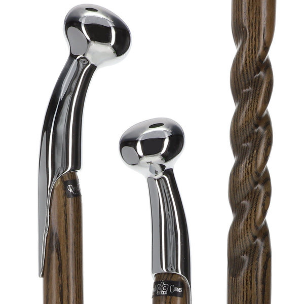 Scratch and Dent Hame Chrome Plated Handle Walking Stick With Twisted Ash Wood Shaft V2310