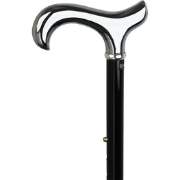 Scratch and Dent Chrome Plated Derby Walking Cane With Folding, Adjustable Black Aluminum Shaft V1713