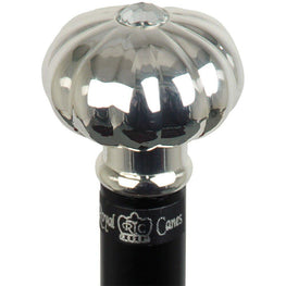 A classic style of a cane brought back to popular fashion by the Royal Canes Company. The high-quality beechwood shaft features a sleek black lacquer finish that will resist chipping and fading, while the classic silver-plated pumpkin-style knob handle adds the distinguished appeal of a classic walking cane. To complete this sophisticated look, a fashionable silver-finished cigar band collar connects the shaft to the elegant handle, and a clear rhinestone is set into the top of the comfortable palm-sized handle. Standing at 37 inches H, this cane is suitable for cane users up to 6 foot 2 inches tall, and can be customized to fit individuals under 6 foot 2 inches. Walk in style and Order yours today!