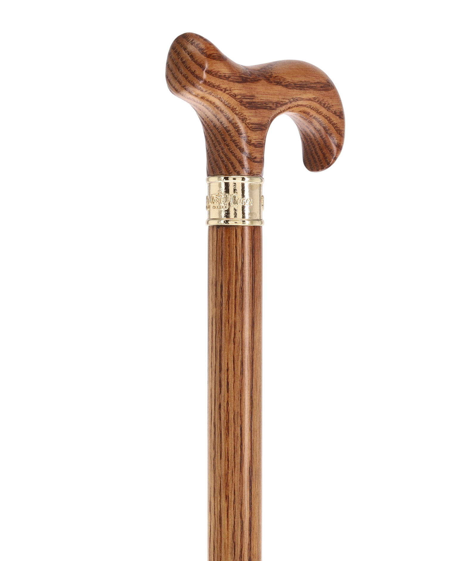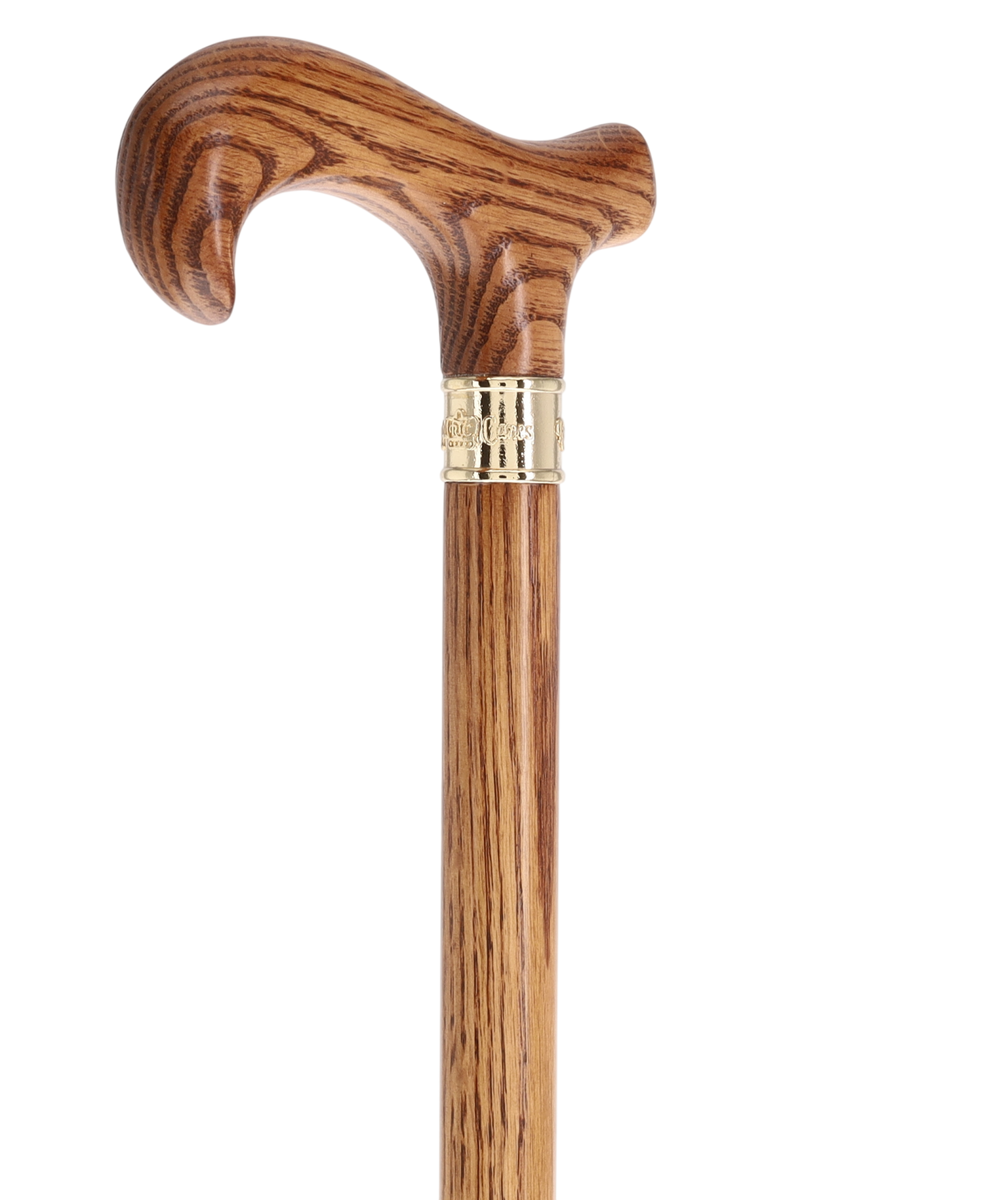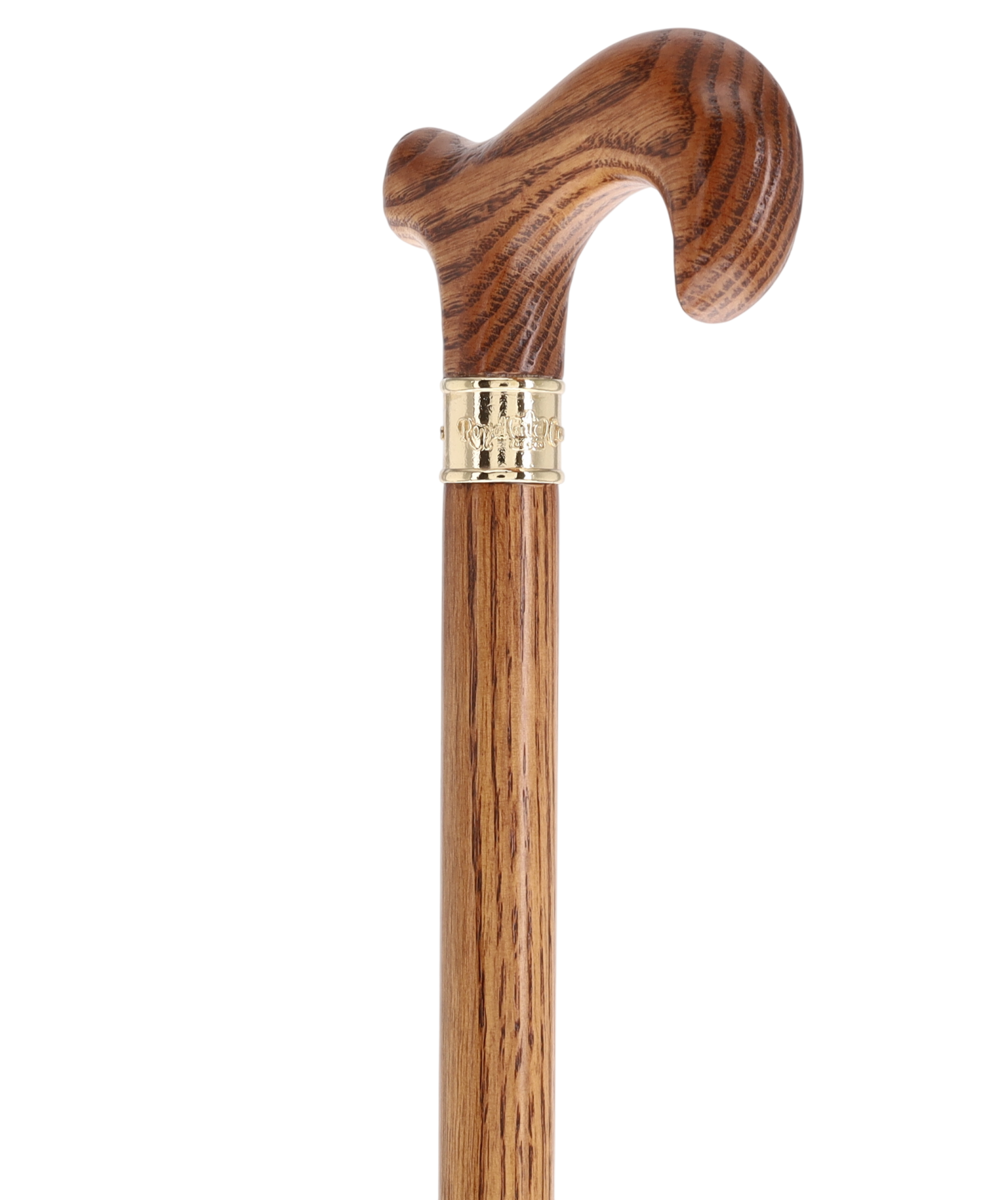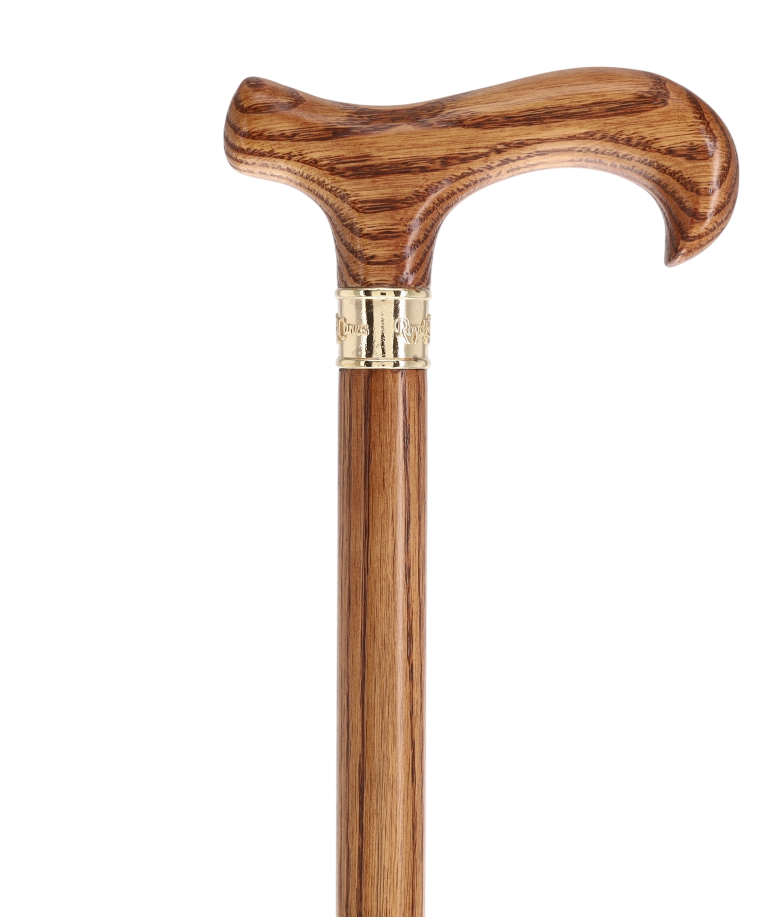 Super Strong & Extra Long Oak Derby Cane: Gold Accent Collar by Royal Canes