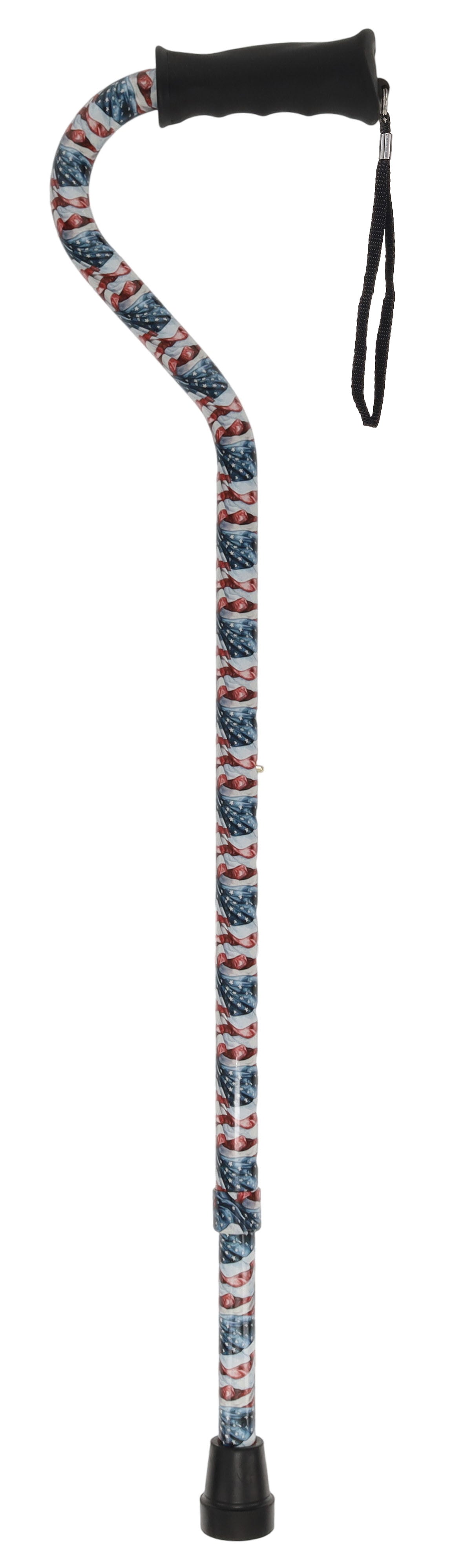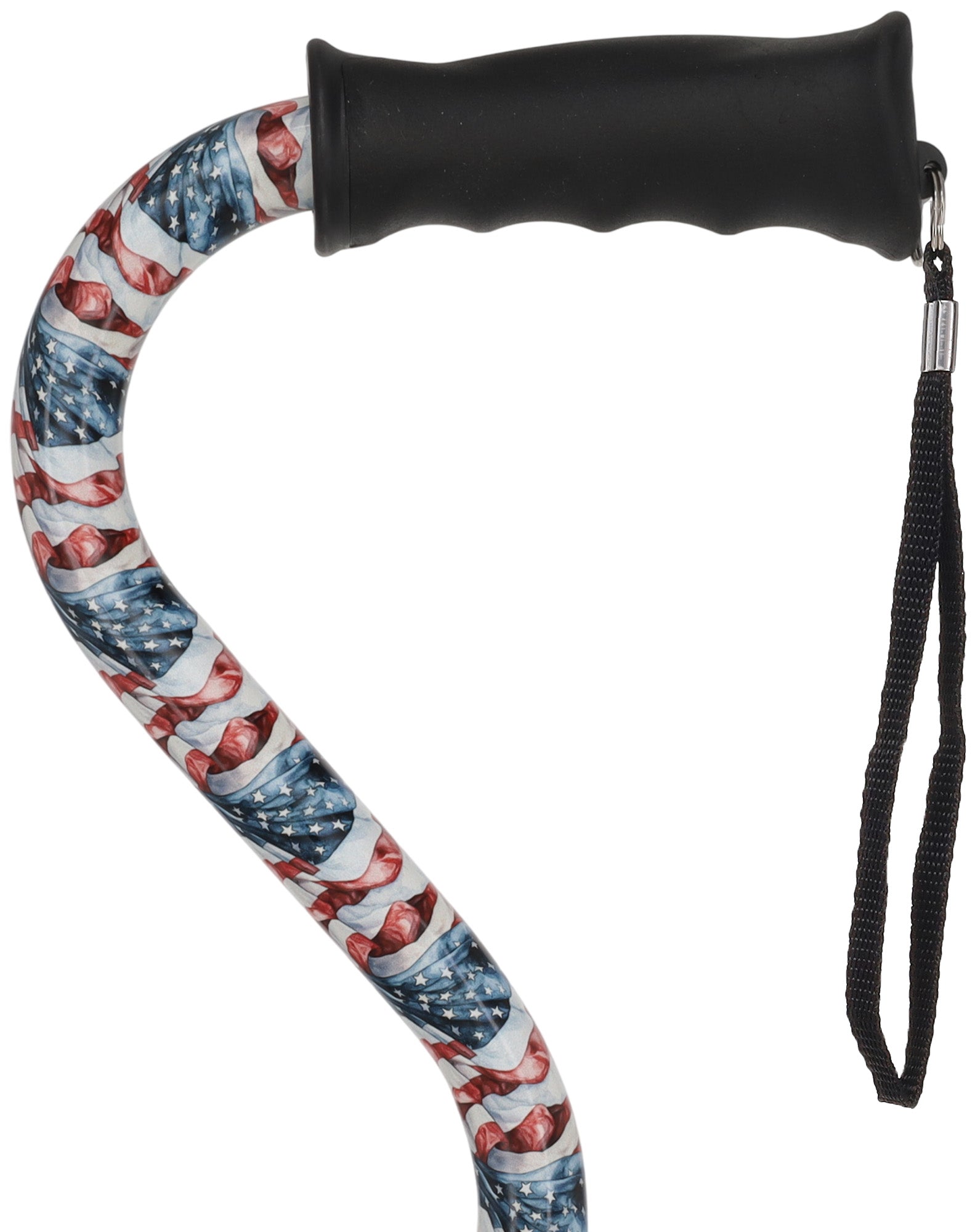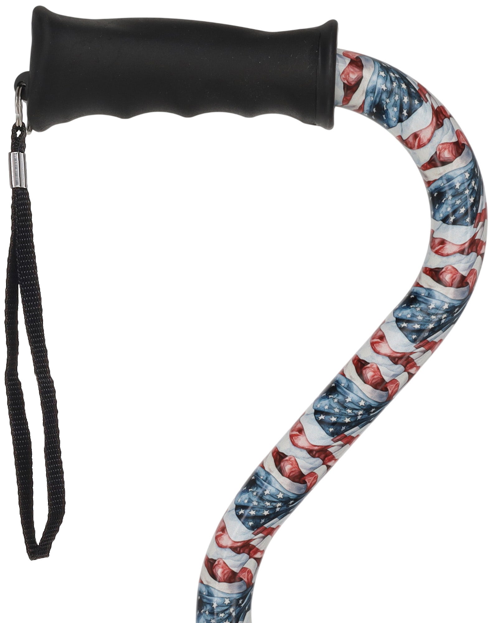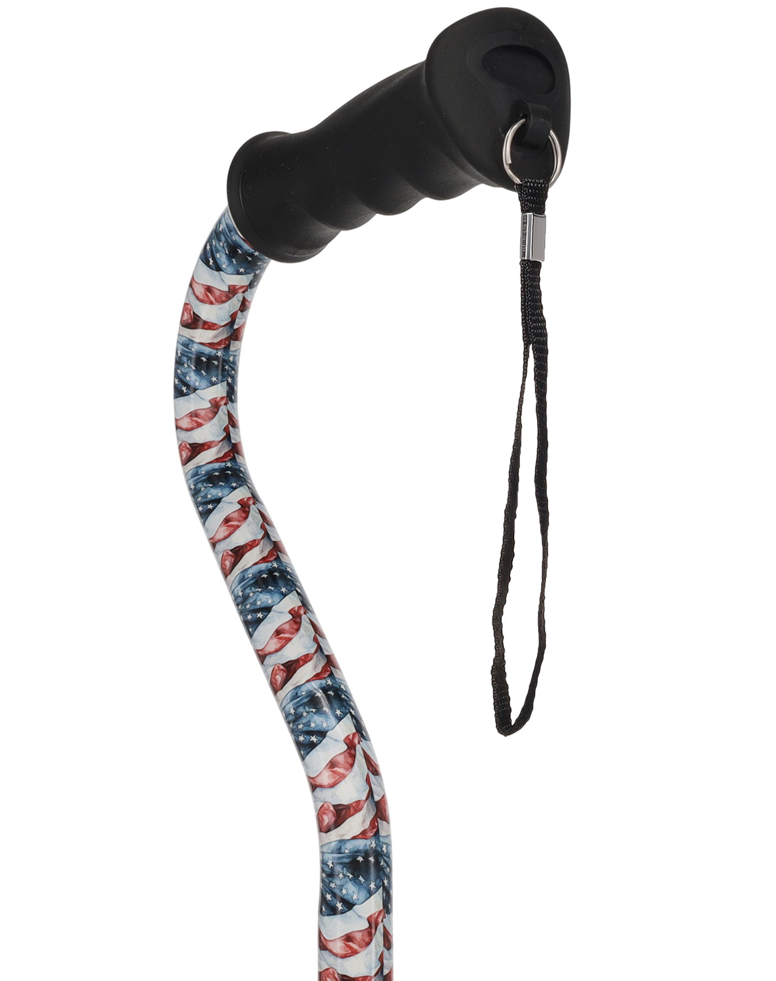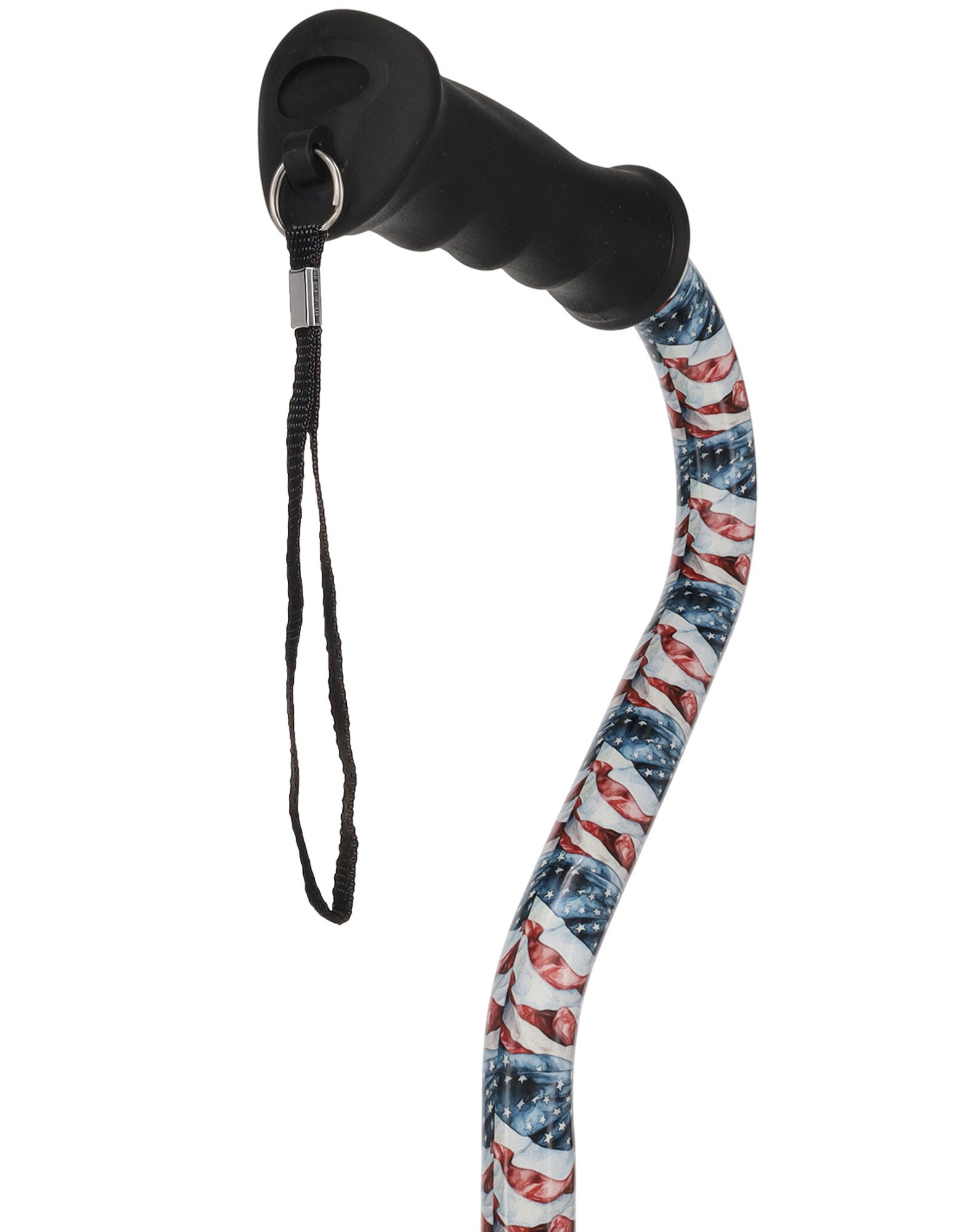Elevate your daily walks with this patriotic adjustable cane, designed for those who refuse to compromise on style or comfort. Featuring an ergonomic offset grip and premium construction, it delivers reliable support with undeniable flair. The striking American flag design and polished finish make a bold statement, while the secure wrist strap keeps you confident with every step. Customize the height to match your needs perfectly. This isn't just mobility—it's a fashion-forward choice that celebrates your independence and refined taste.