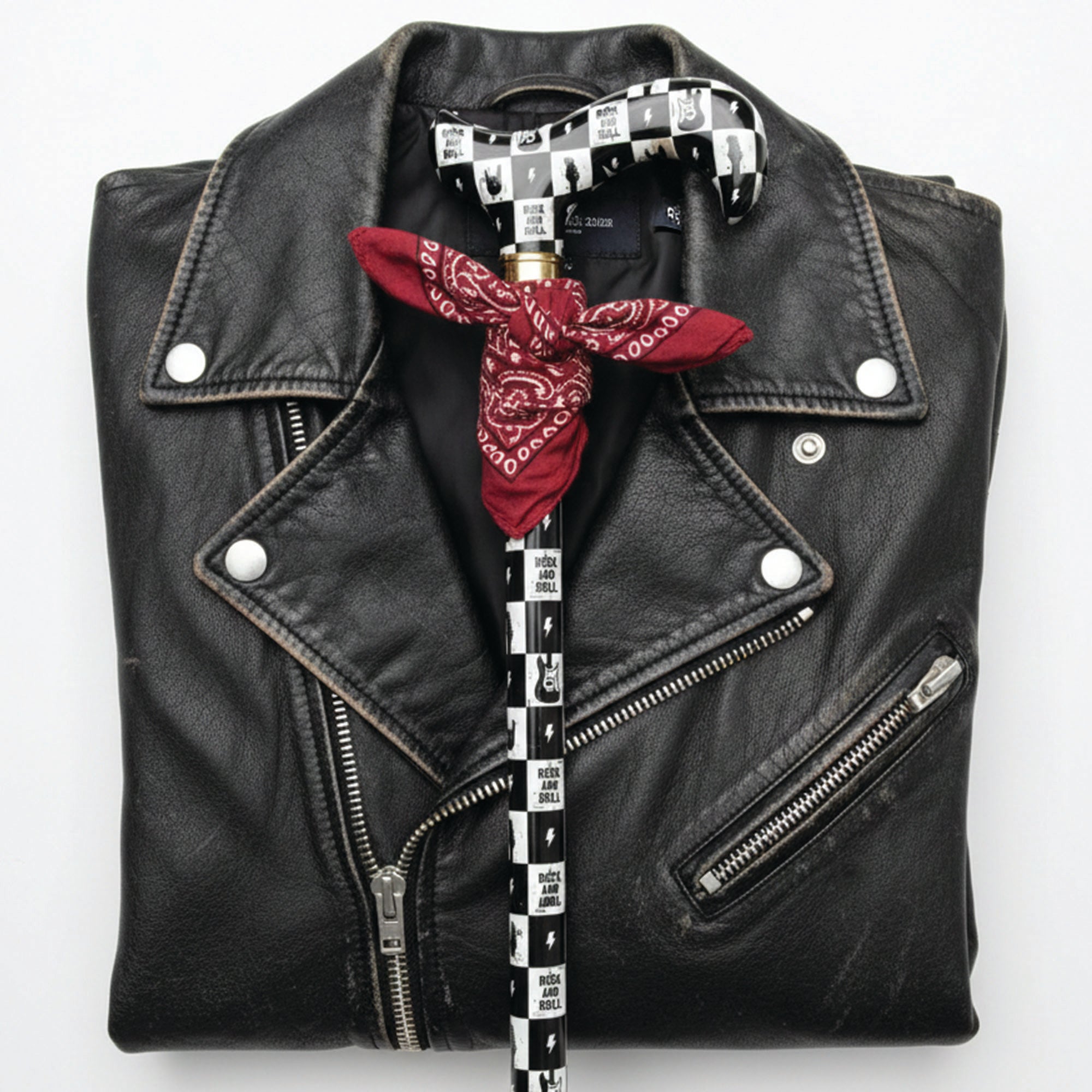 Channel timeless rock and roll spirit with this striking black and white designer cane that celebrates musical legend. Featuring a classic derby handle and premium materials, it delivers dependable support while the bold checkered pattern and guitar imagery make an unforgettable statement. Adjust the height to fit your frame perfectly, and count on the secure wrist strap for confidence with every stride. This isn't merely a mobility aid—it's a bold accessory for those who live authentically and refuse to fade into the background. Carry a piece of music history while moving through your day with style, comfort, and unmistakable attitude.