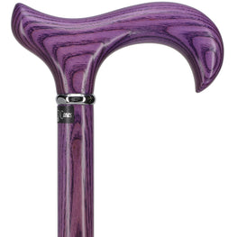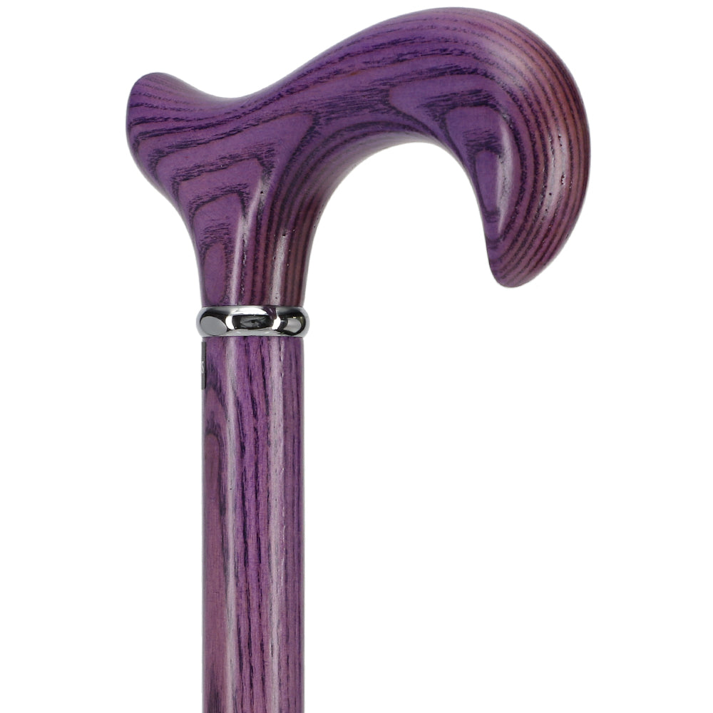 The Royal Canes Company is proud to offer this brand new design, featuring a vivid purple stain to add flair to the natural beauty of the ash wood grain. The comfortable derby handle is designed to distribute the user's weight evenly through the solid shaft, while a silver-finished collar accentuates the already stylish design. Buy this cane today and appreciate the stylish, sturdy support.